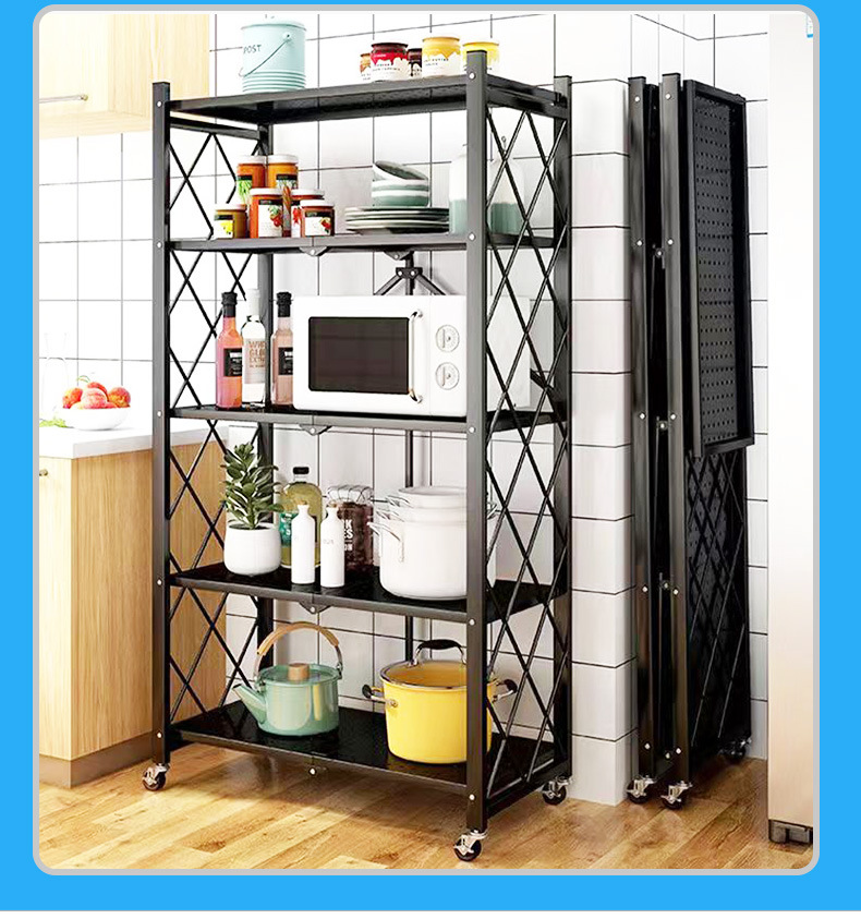 침실 및 거실용 설치가 필요 없는 접이식 다층 모바일 수납 선반 회전 수납 홈 플로어 스탠딩 다기능 수납 선반