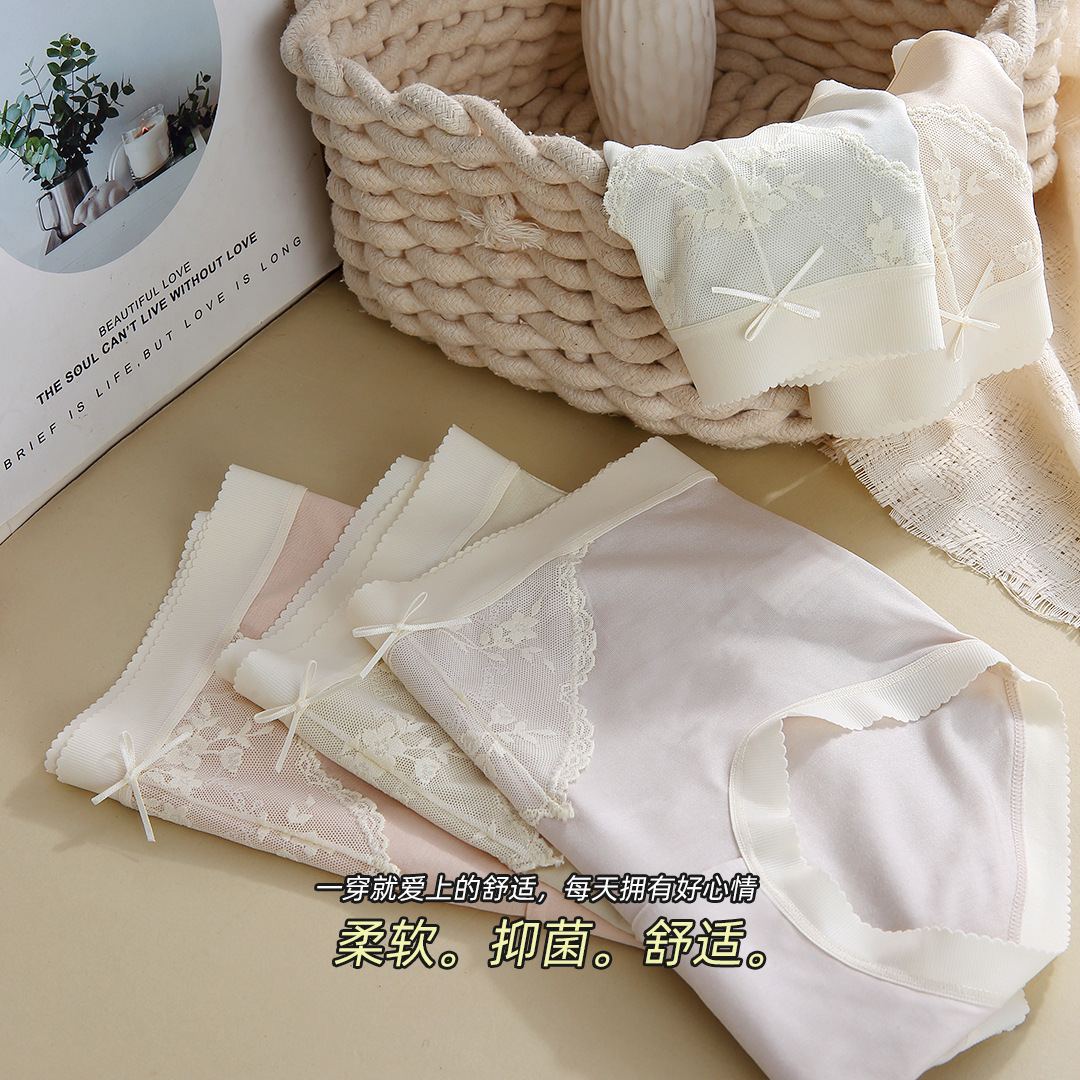 여자를위한 모달 속옷 코튼 순수한 욕망 활 통기성 중간 허리 섹시한 새로운 여성 레이스 삼각형 반바지