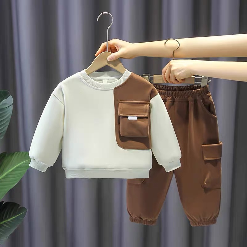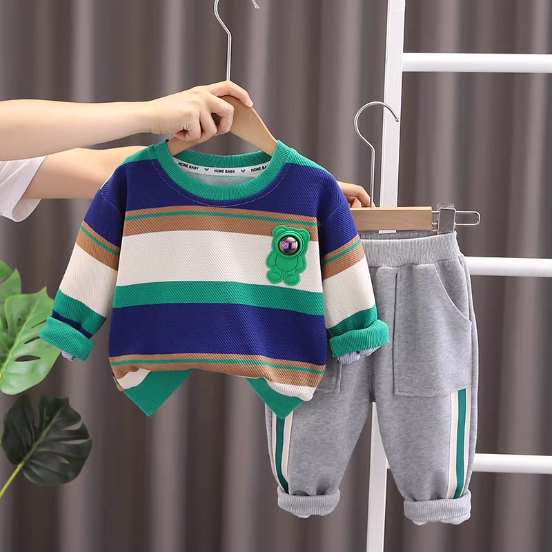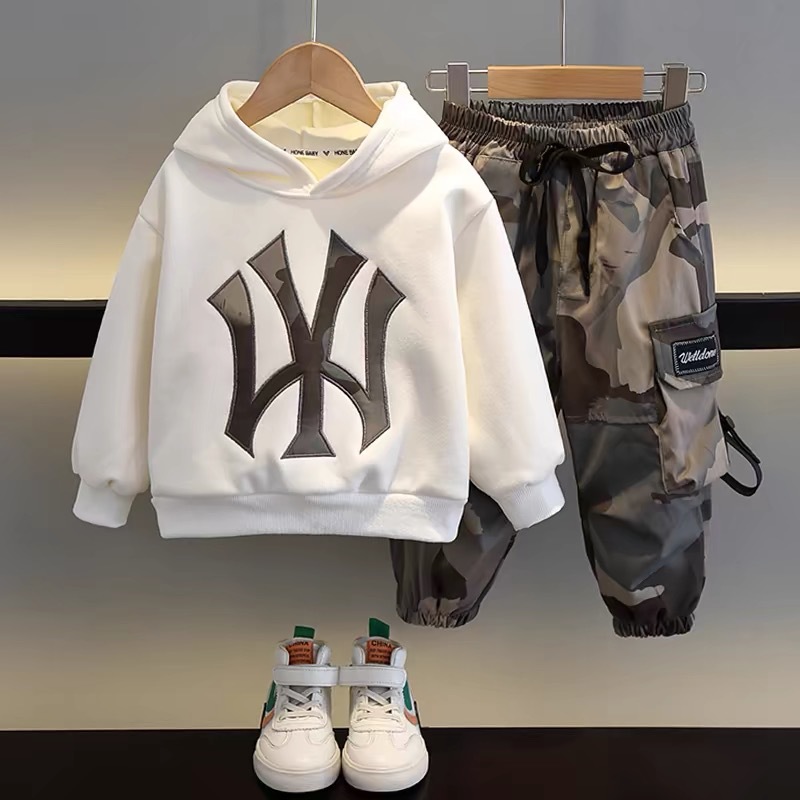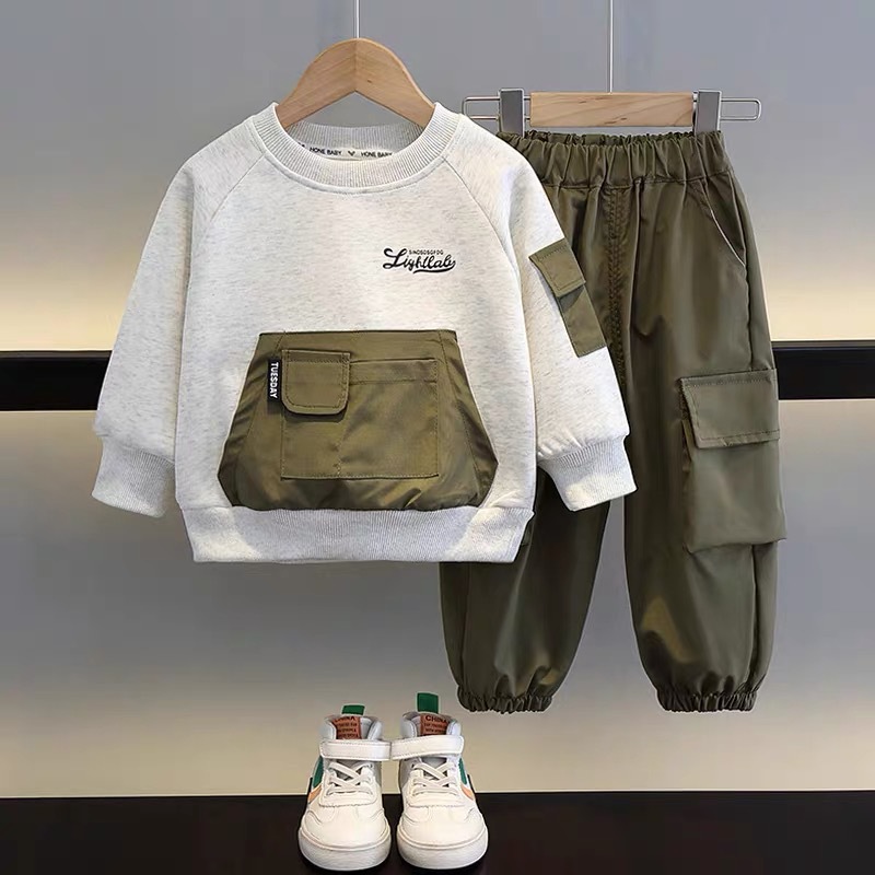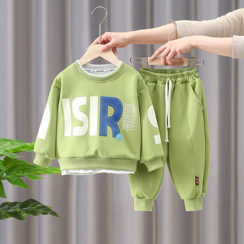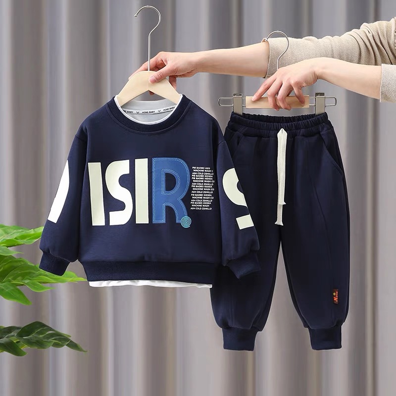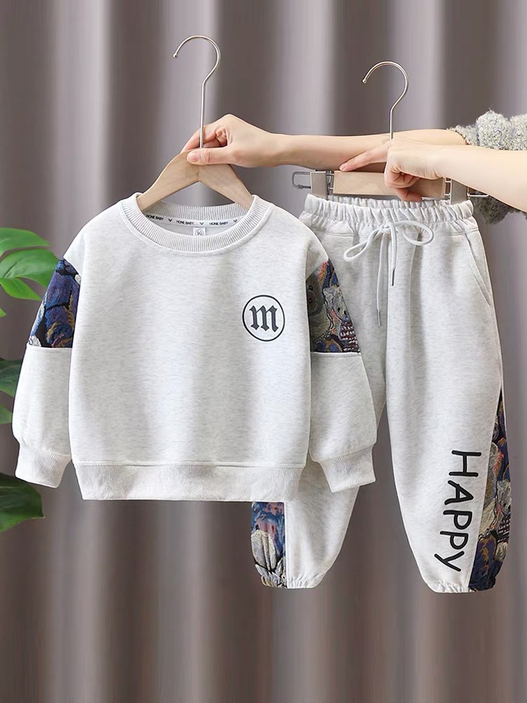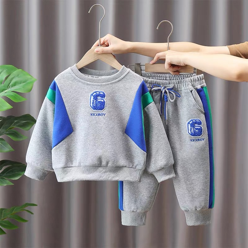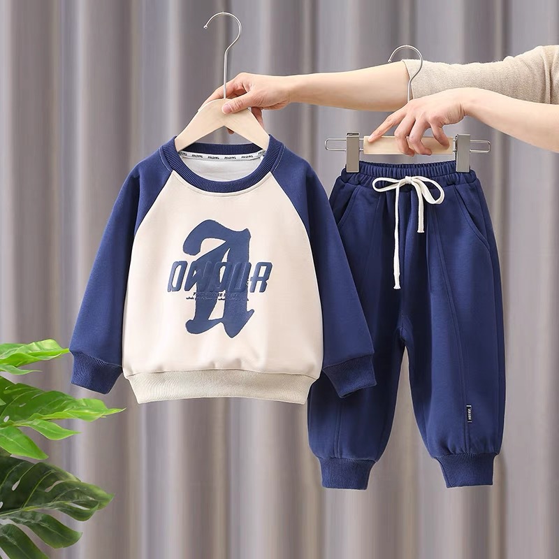소년 가을, 겨울 의류 세트 2025 새로운 아기 스포츠 의류 어린이 가을, 겨울 벨벳 운동복 투피스 세트