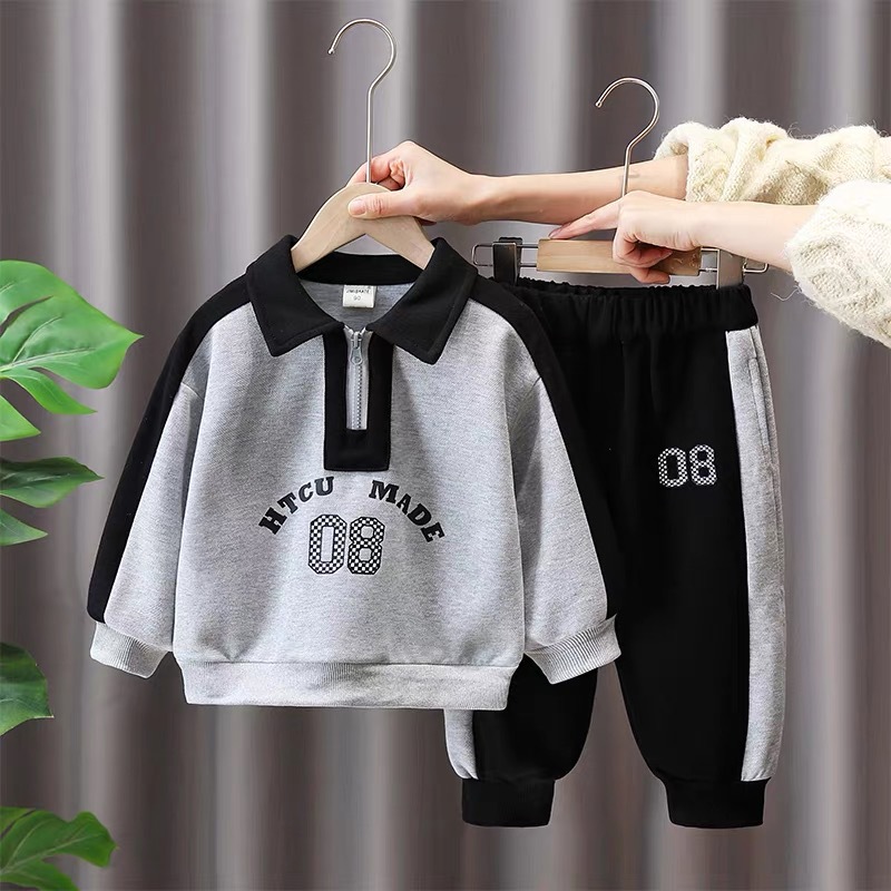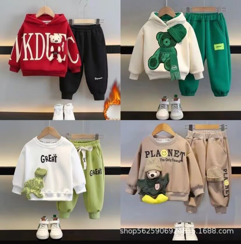 소년 가을, 겨울 의류 세트 2025 새로운 아기 스포츠 의류 어린이 가을, 겨울 벨벳 운동복 투피스 세트스토어 가기