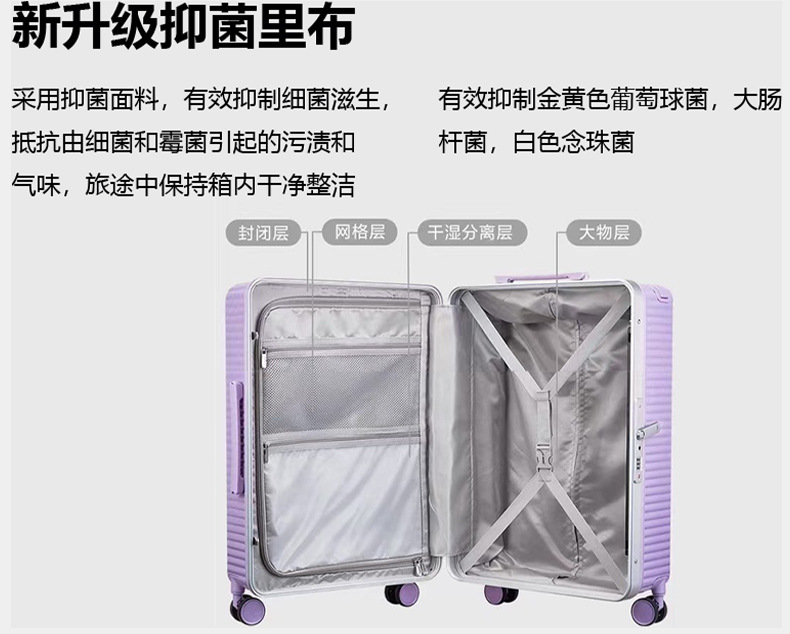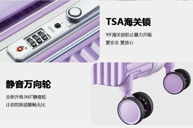 경량 및 내마모성 PC 소재, 소형 다기능 비밀번호 상자, 탑승 가능 24inch 무소음 휠 대용량 여행가방