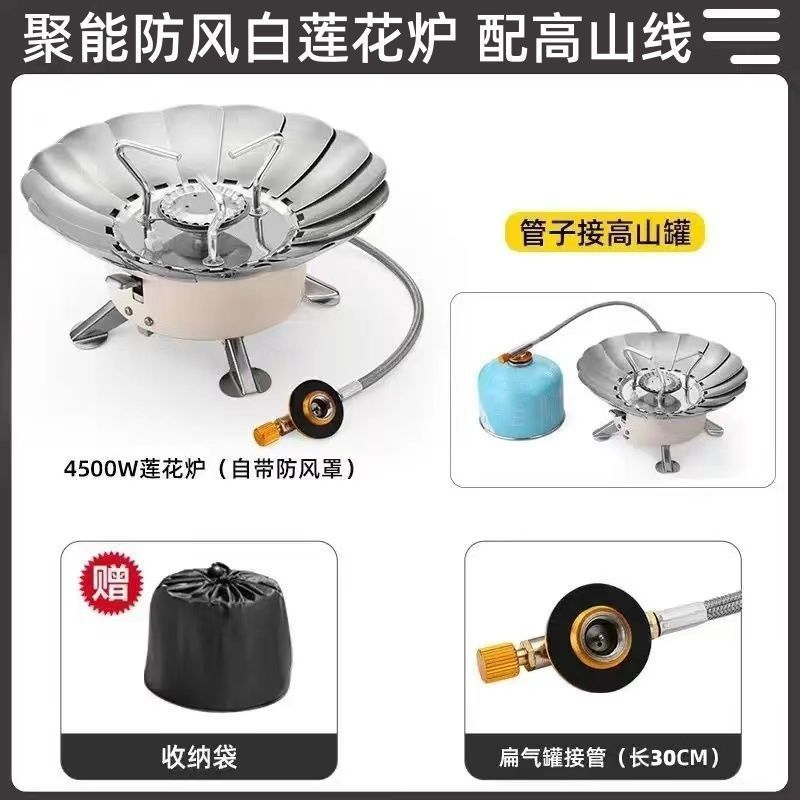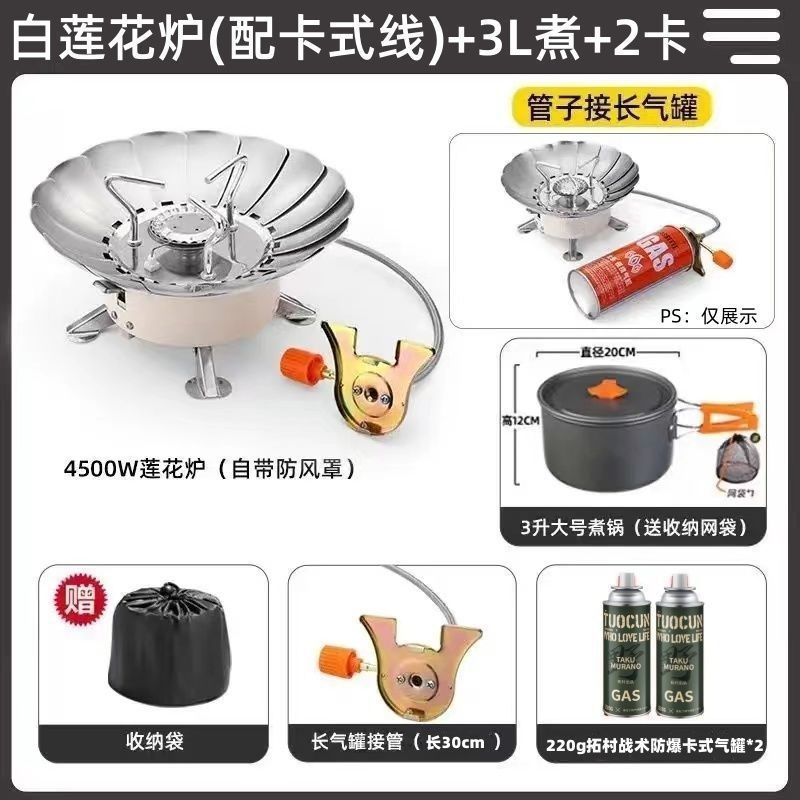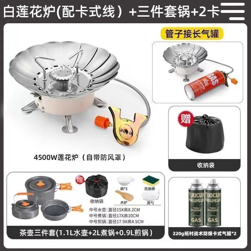 • *[업그레이드 모델] 방풍 연꽃 난로 [장기 가스 파이프] + 가스 2개 + 찻주전자 3종 세트