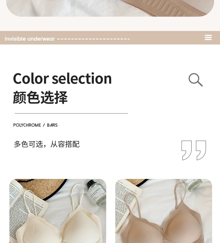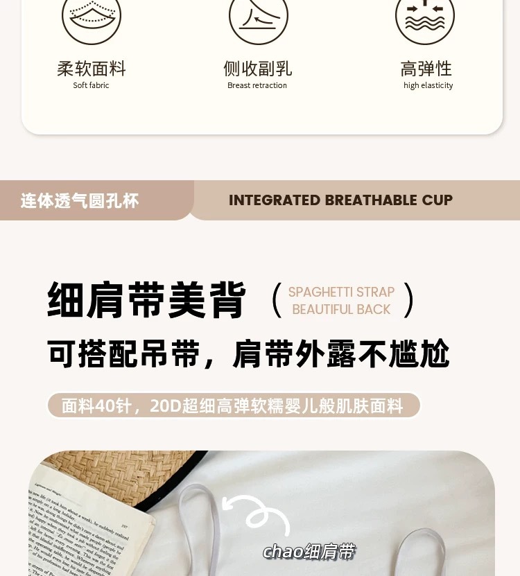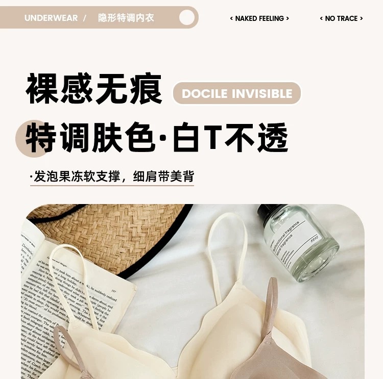 여성용 심리스 속옷, 얇고 눈에 띄지 않는 아름다운 등, 큰 가슴, 작은 가슴, 푸쉬업 스파게티 스트랩 스포츠 조끼 스타일 브라스토어 가기