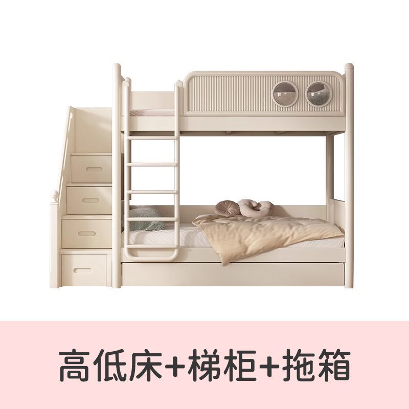 어린이 이층 침대 단단한 나무 작은 가정용 높낮이 침대 2층 이층 침대 소녀 다기능 이층 침대