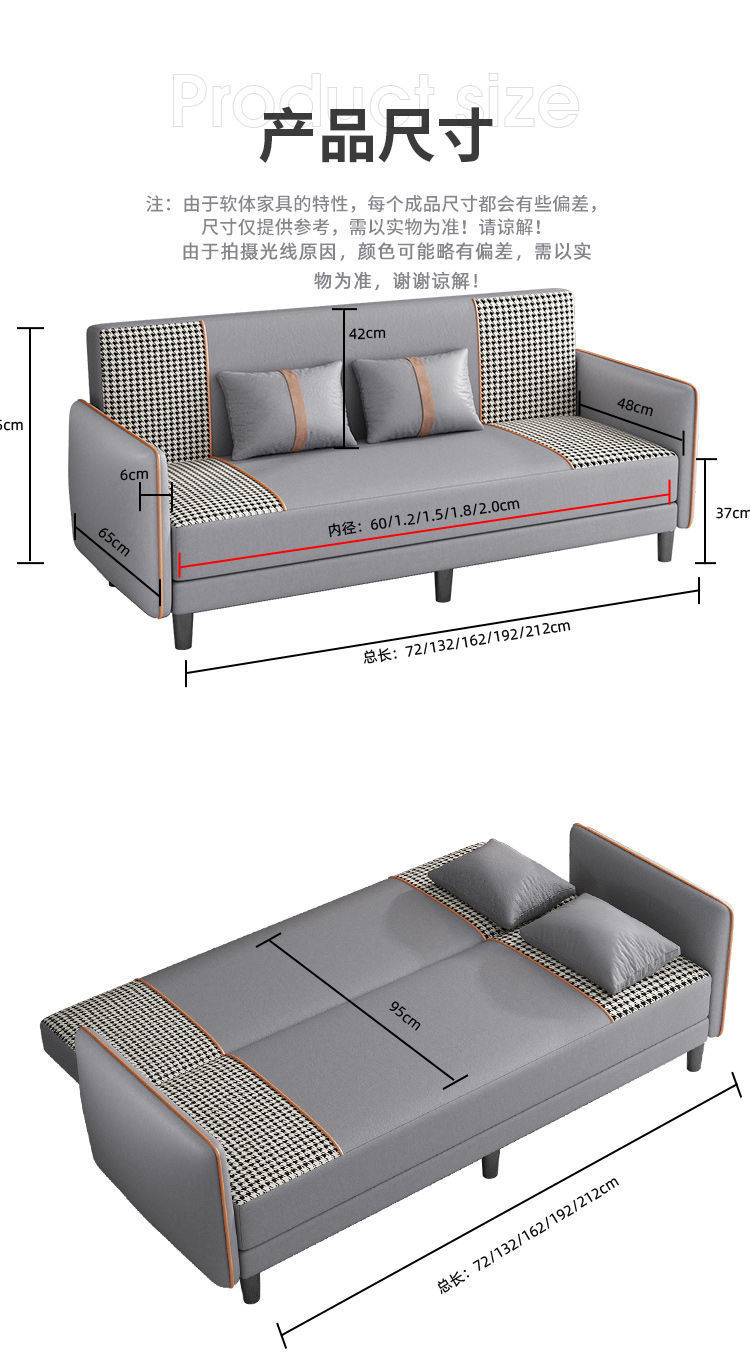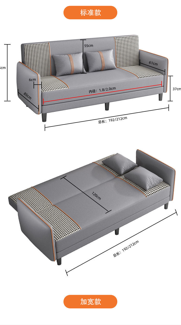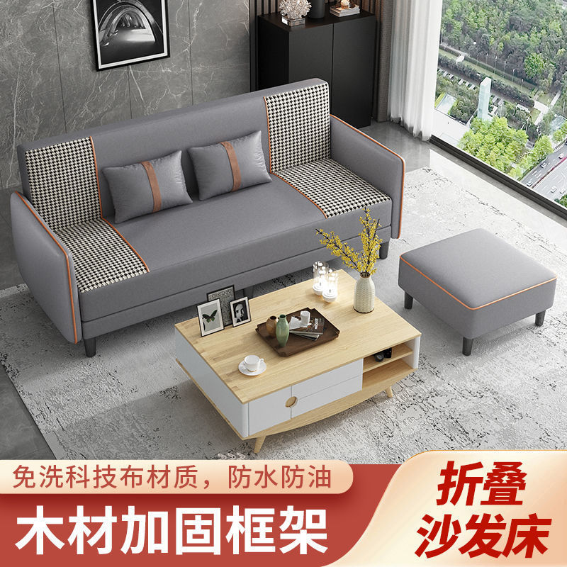소형 아파트용 패브릭 소파 베드, 인터넷 연예인 모델, 거실, 임대실, 아파트, 의류 매장, 간단한 접이식 이중 용도 싱글 및 더블