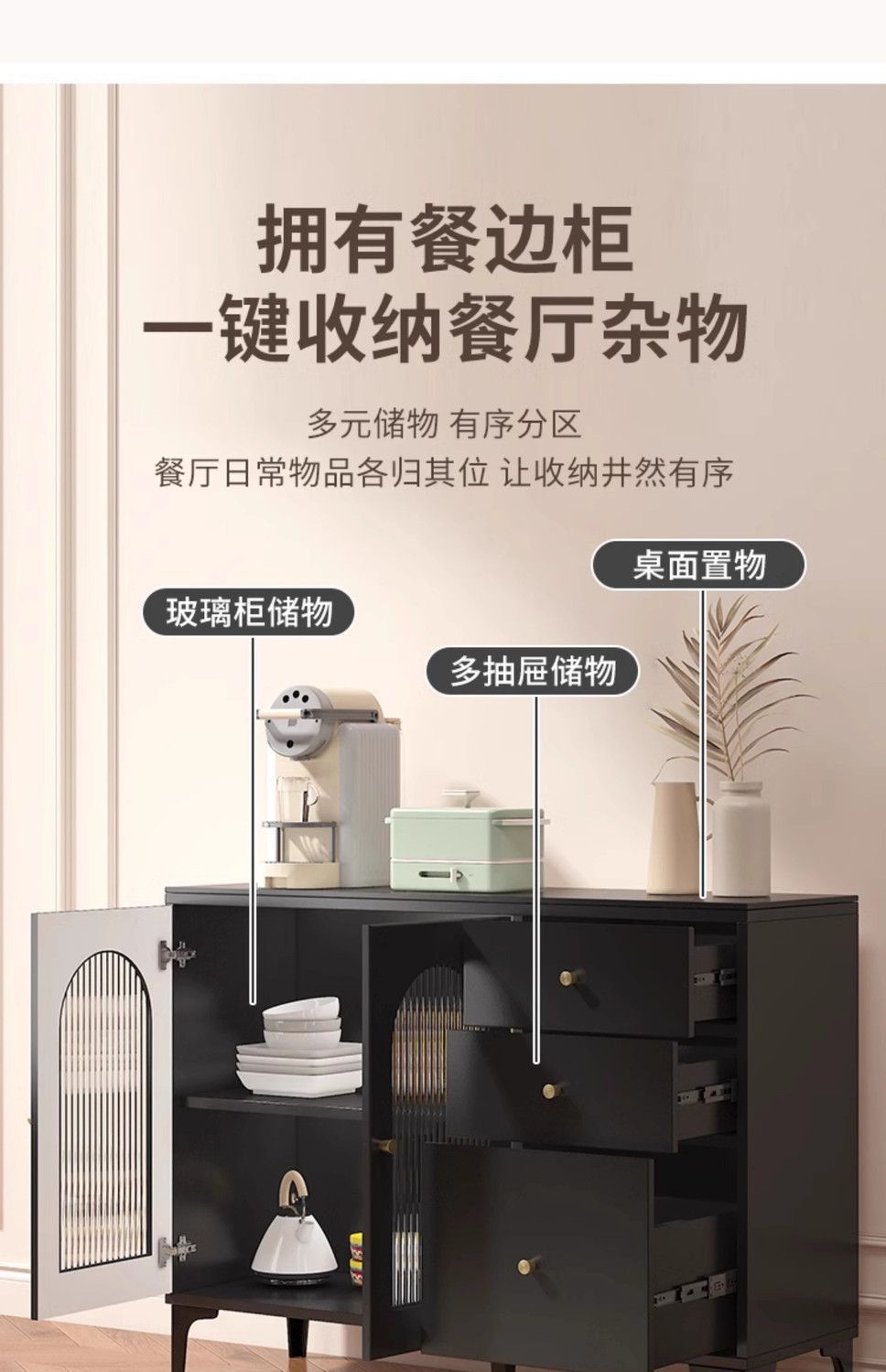 블랙 사이드보드, 모던하고 심플한 일체형 서랍장, 벽걸이형 거실 수납장, 주방 캐비닛, 차와 와인 캐비닛스토어 가기