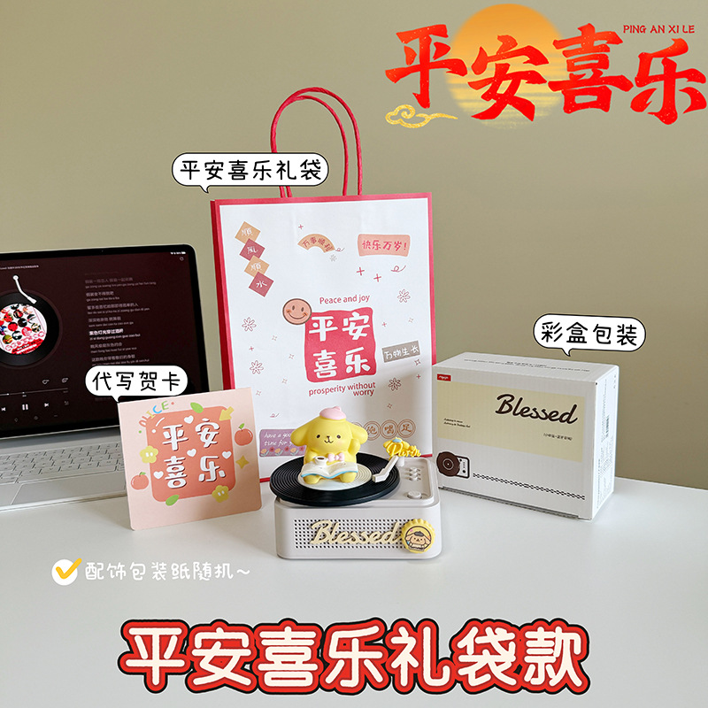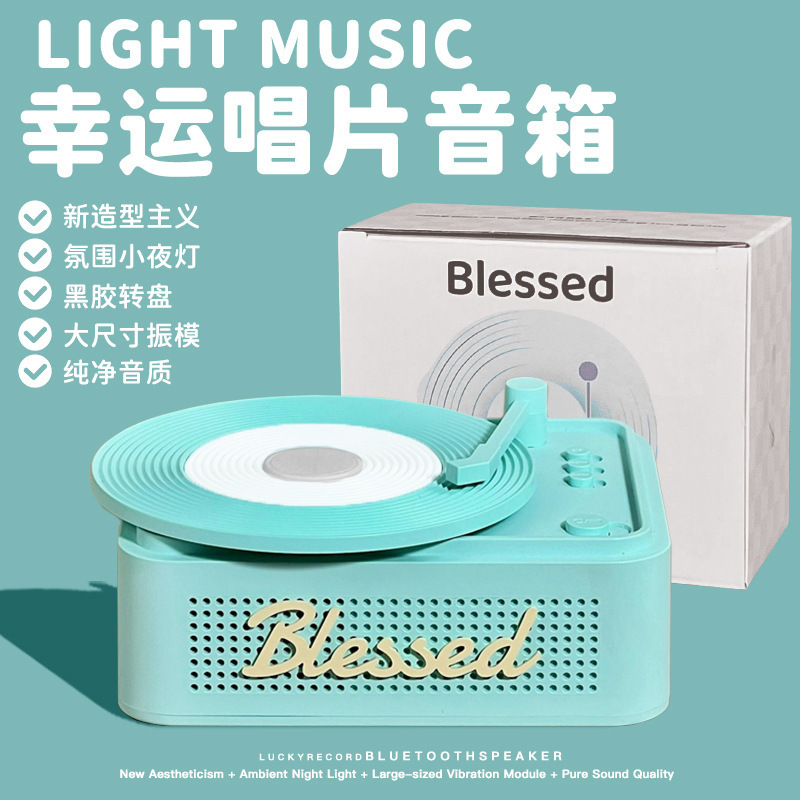 작은 행운의 복고풍 비닐 레코드 블루투스 오디오 서브 우퍼 휴대용 미니 야외 블루투스 소형 스피커 주변 조명