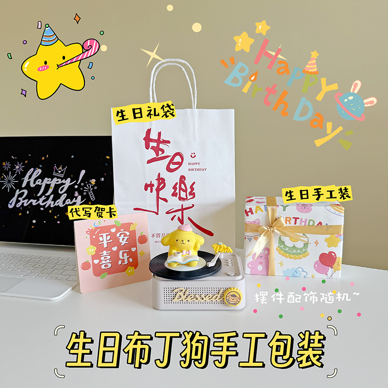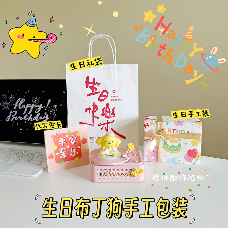 • 폼폼푸린 장식품 [생일 축하 선물 가방] 화이트