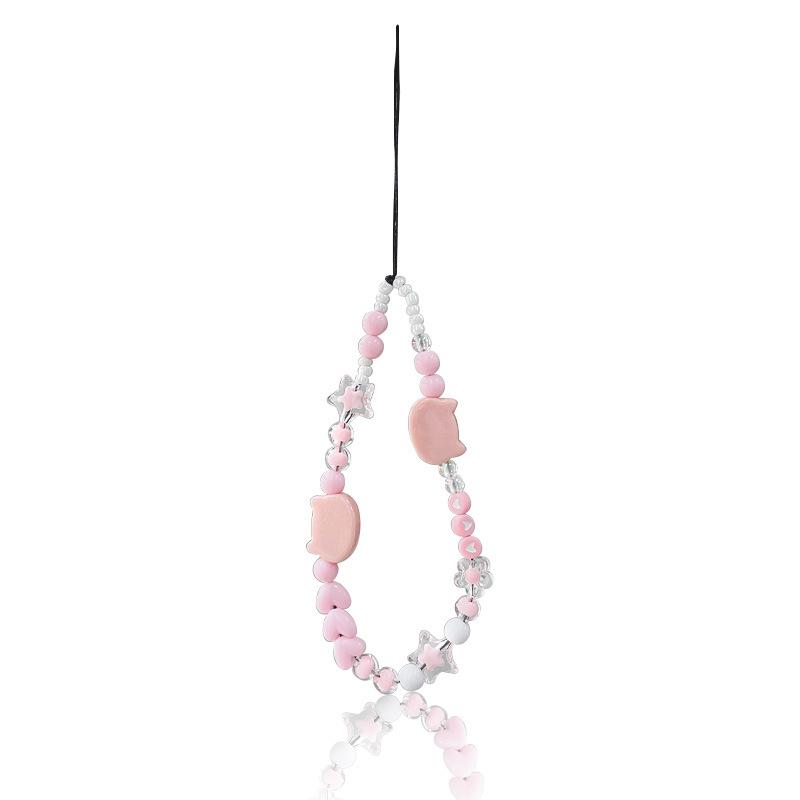 여성을위한 크리 에이 티브 DIY 휴대 전화 끈 짧은 작은 신선한 만화 핑크 페르시 체인 휴대 전화 체인 액세서리 가방 장식