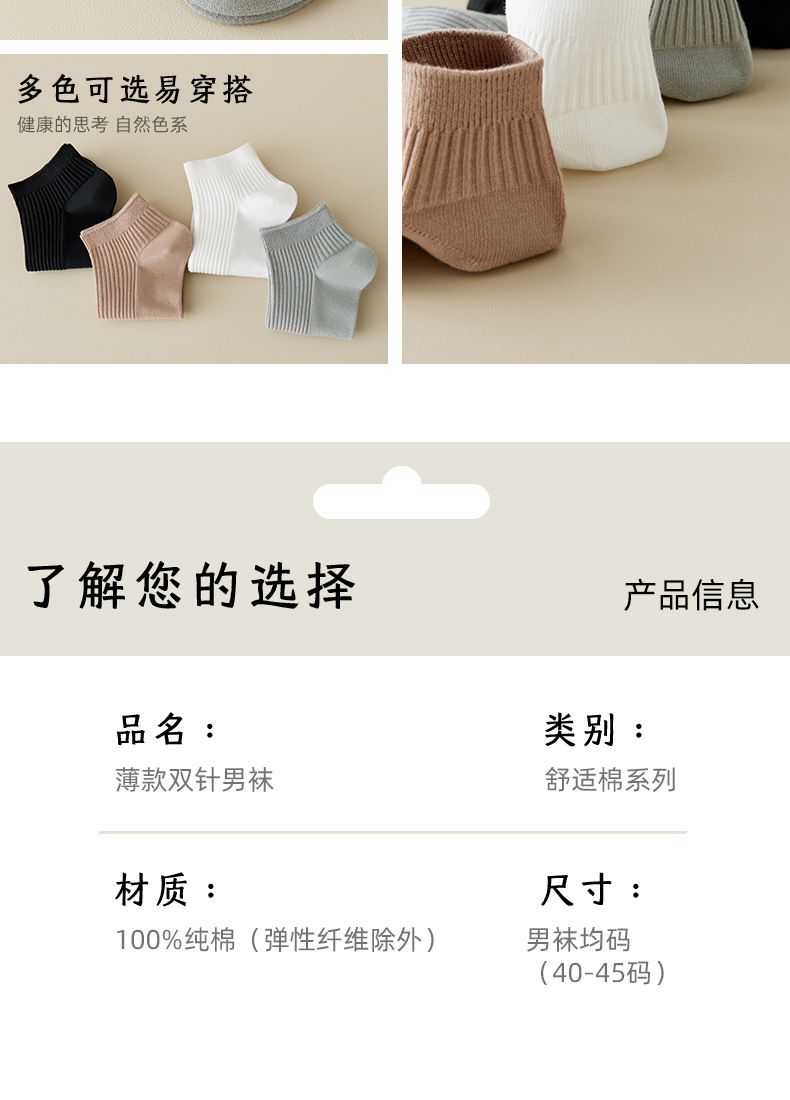 양말 남성용 봄 여름 순면 통기성 땀 흡수 이중 바늘 짧은 양말 7A 항균 및 탈취 발이 떨어지지 않는 캐주얼 보트 양말