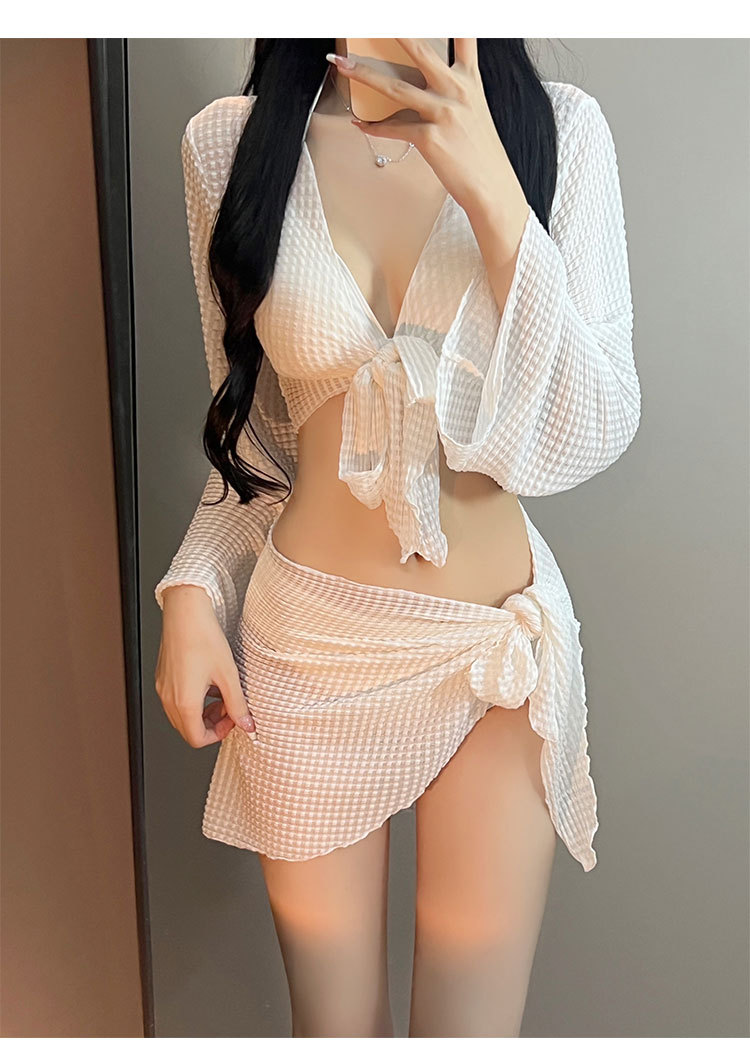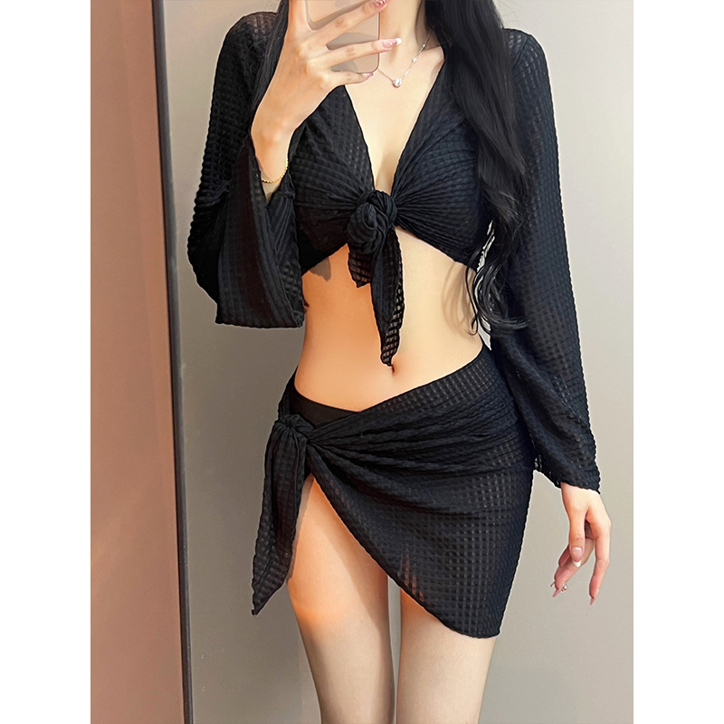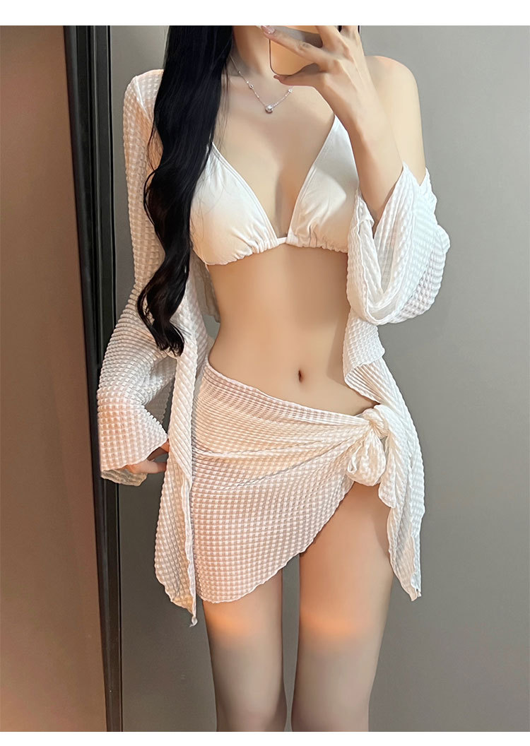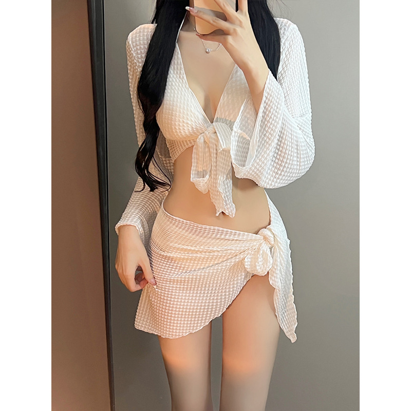 비키니 수영복 여성 2025 새로운 4 피스 화이트 섹시 트렌디 스커트 스타일 스플릿 수영복 산야 리조트 온천