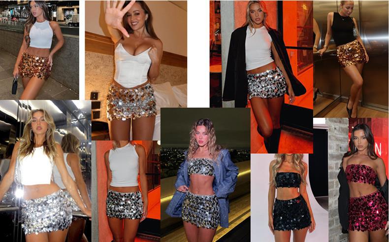 여성 스팽글 스커트 반짝 이는 탄성 Bodycon 미니 파티 반짝이 스커트