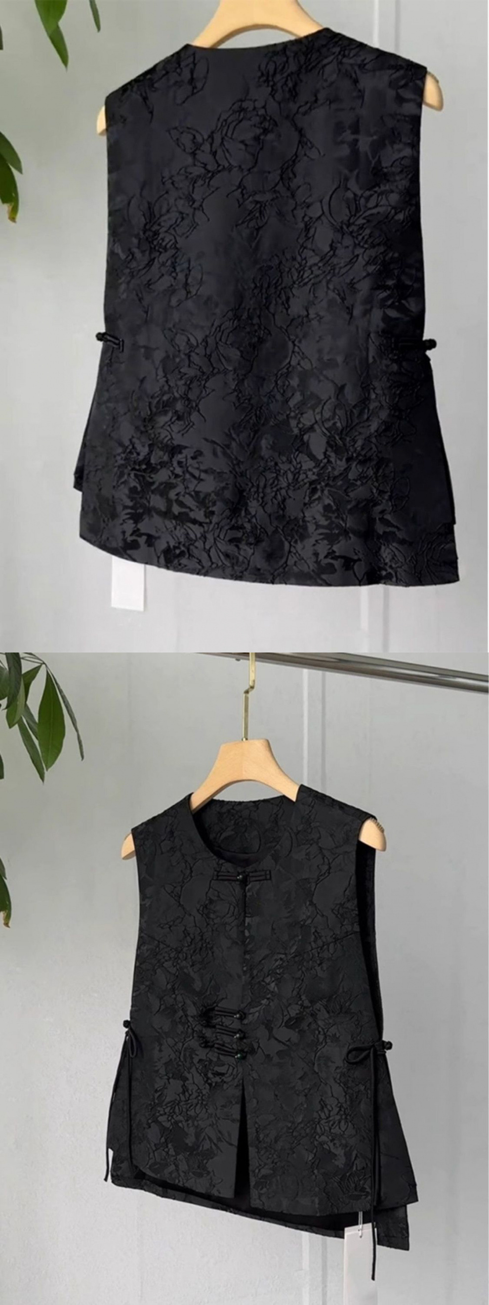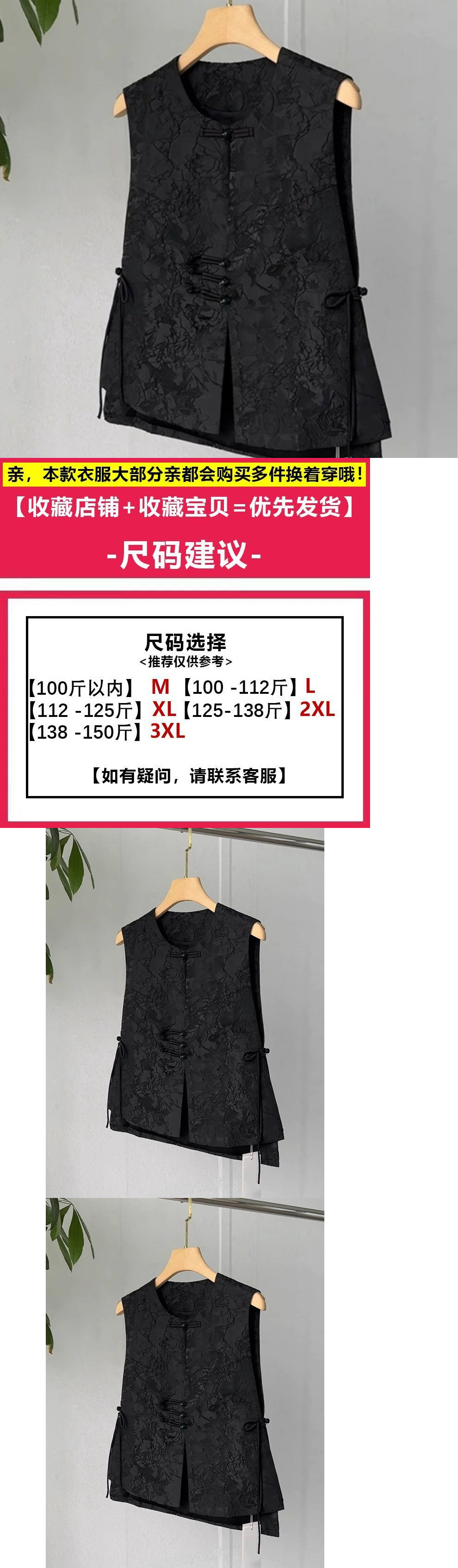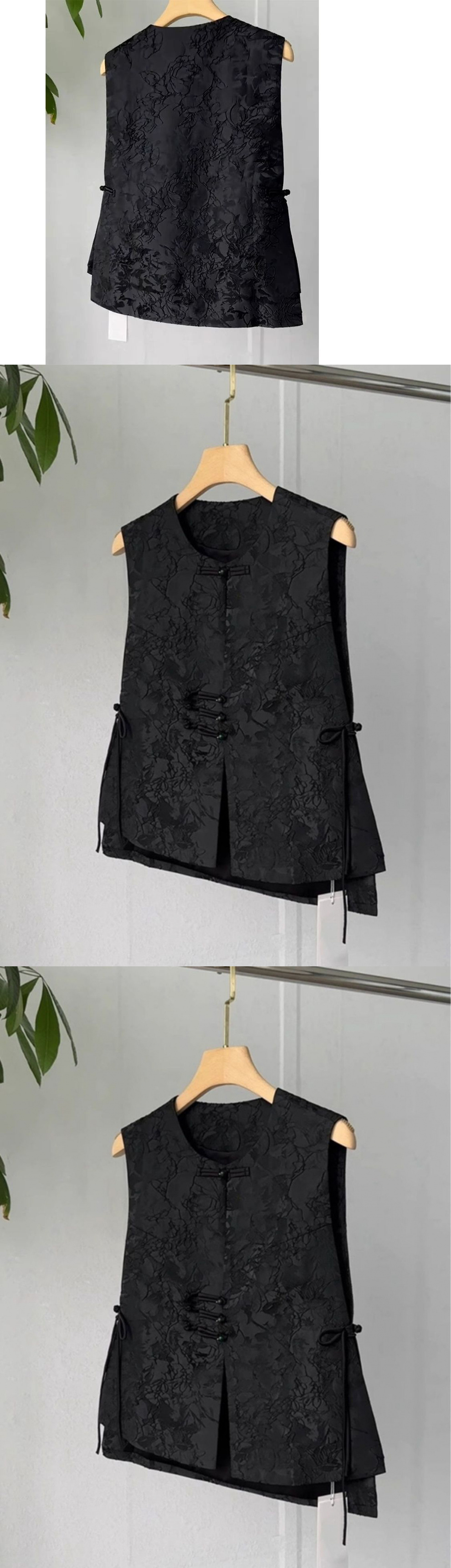 여성을위한 중국 스타일 하이 엔드 블랙 자카드 조끼 여름 복고풍 새로운 중국 스타일 버클 라운드 넥 양복 조끼 탑스토어 가기