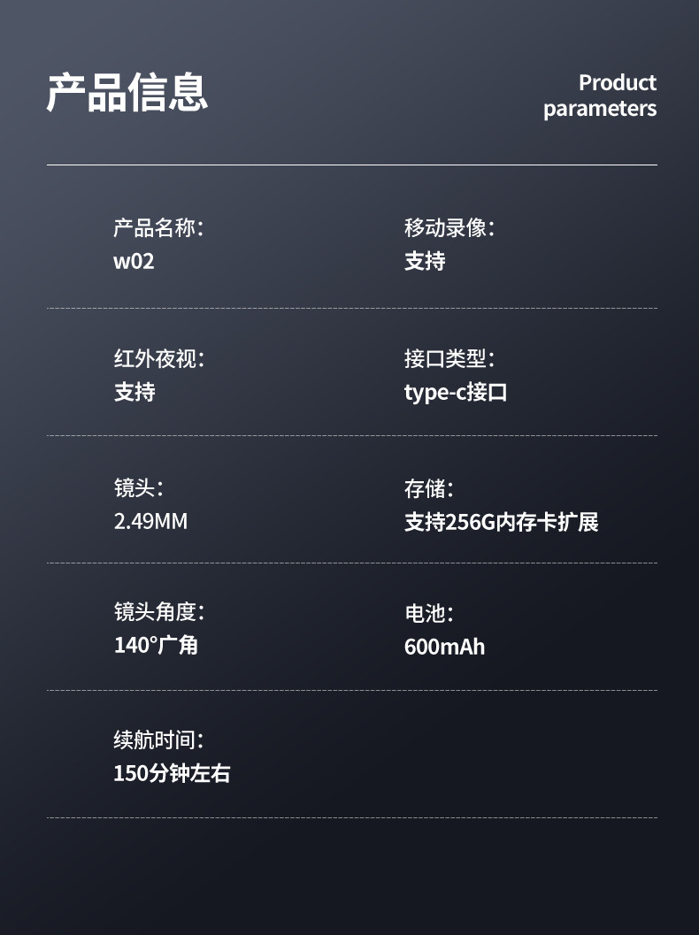 크로스보더 프라이빗 모델 W02 고화질 1920 카메라 와이파이 블루투스 야간 투시 광각 140 ° 스포츠 카메라스토어 가기