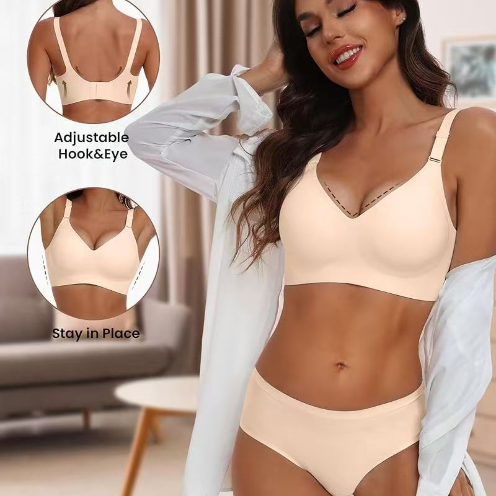 크로스보더 유럽 및 미국 아마존 젤리 소재 부드러운 지지력 큰 가슴을 작아 보이게 하는 푸쉬업 브라, 큰 사이즈 노와이어 무봉제 브라 속옷스토어 가기
