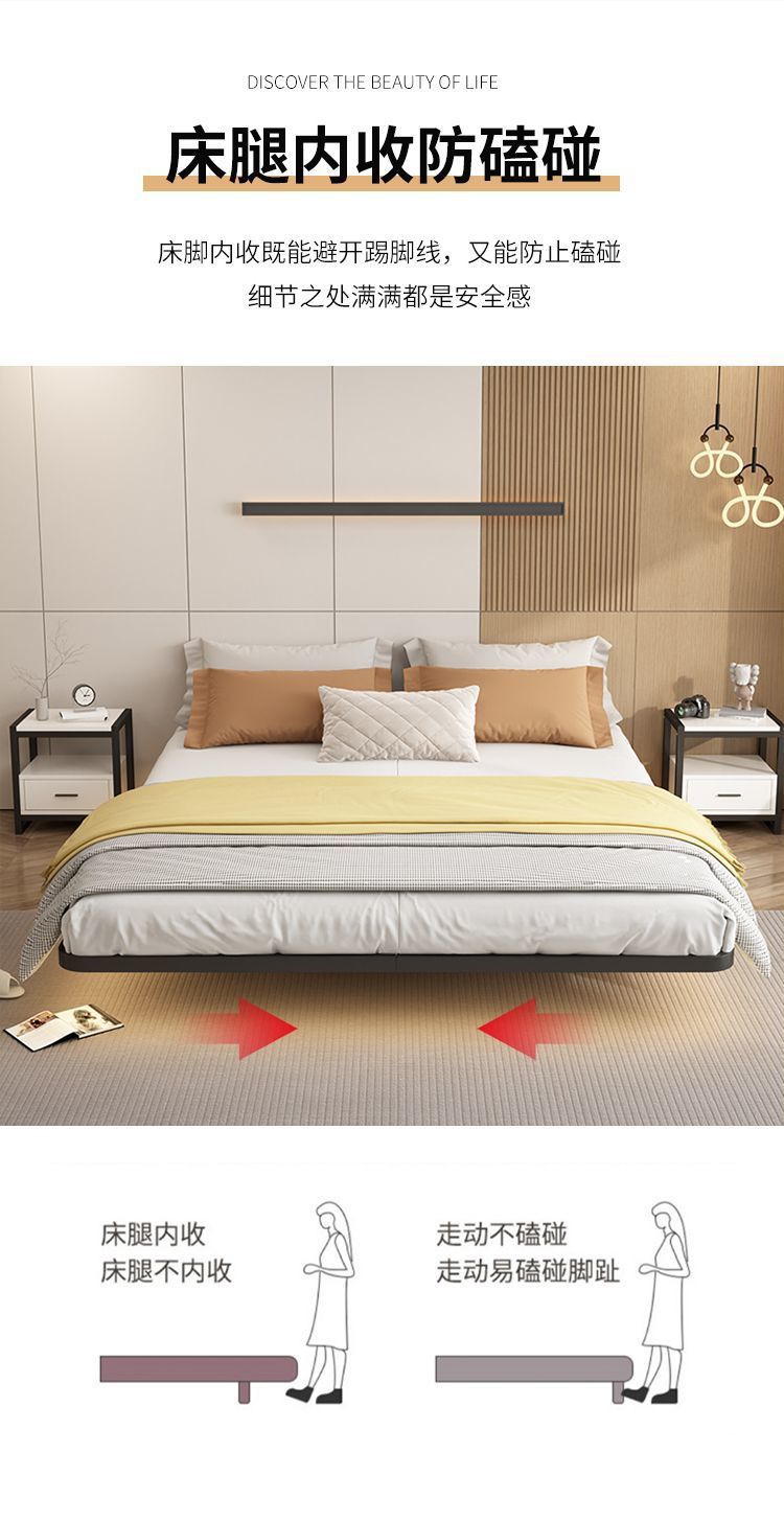 인터넷 연예인 간단한 서스펜션 침대 1.68m 이탈리아 스타일 라이트 럭셔리 침대 옆이없는 침대 프레임 더블 철제 침대 아파트 철제 침대 프레임스토어 가기