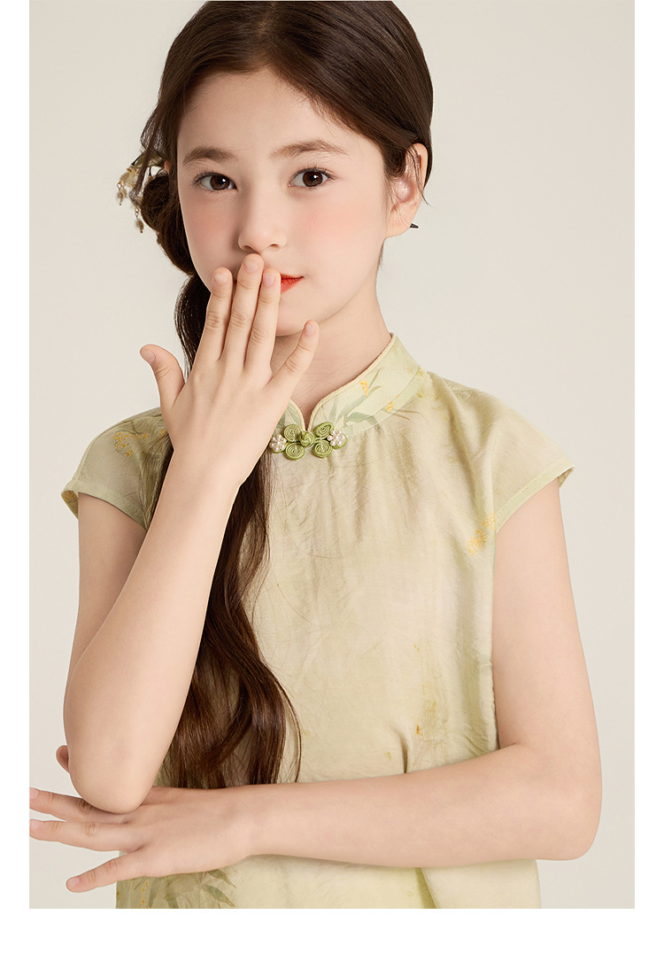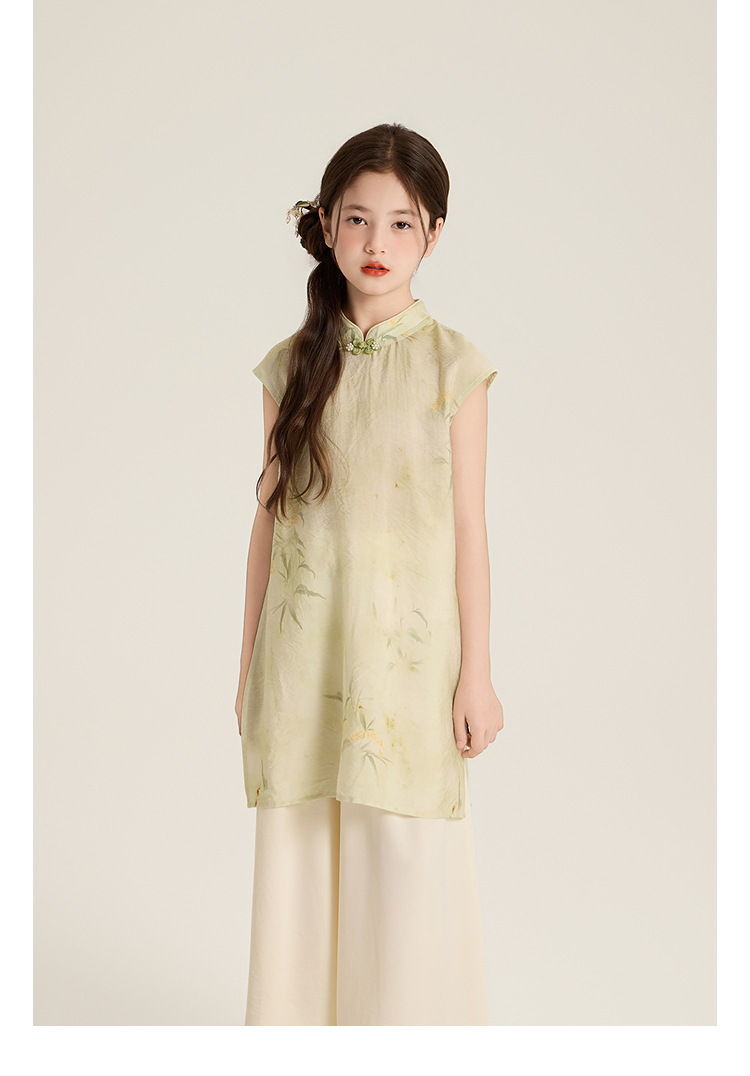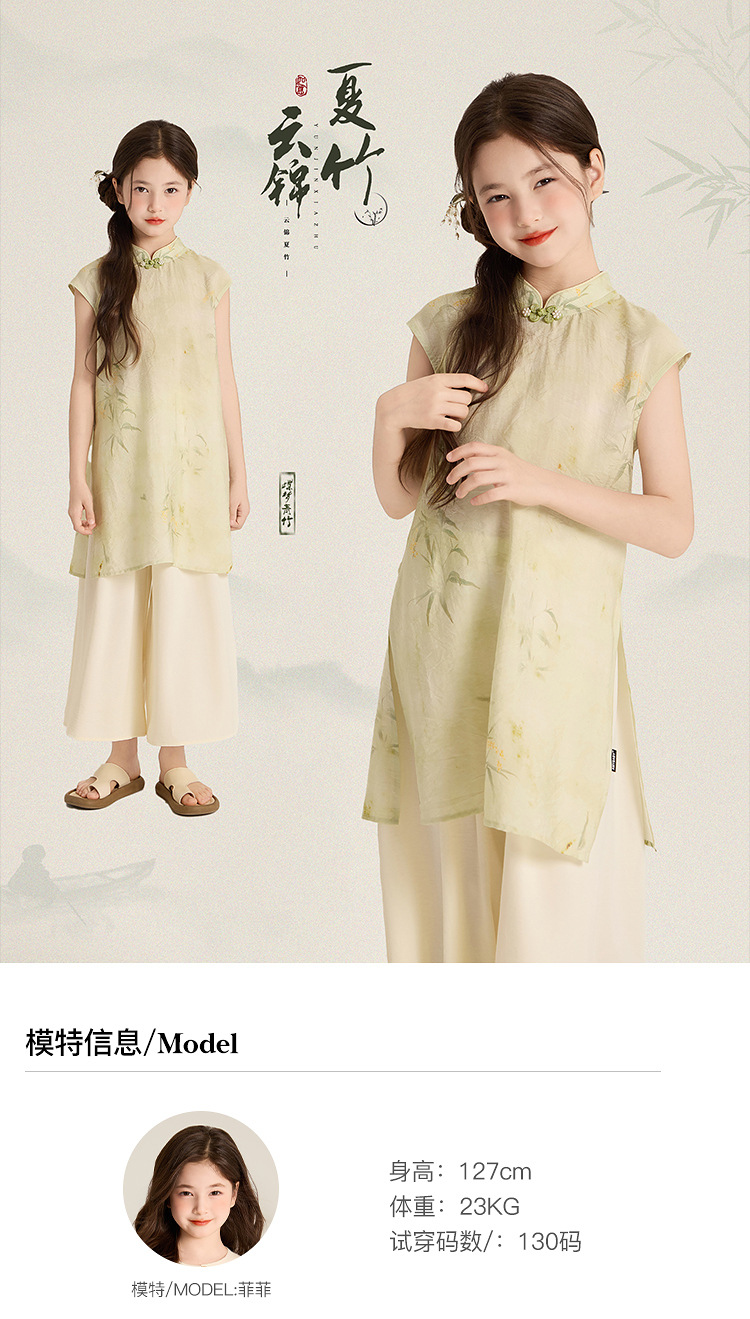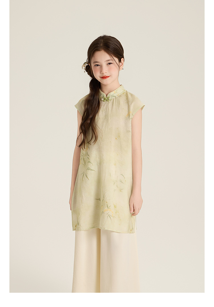 Amybaby 여아 정장 여름 2025 새로운 중국 스타일 탑 9부 와이드 팬츠 투피스 세트