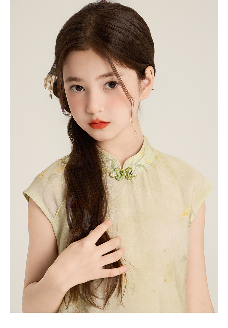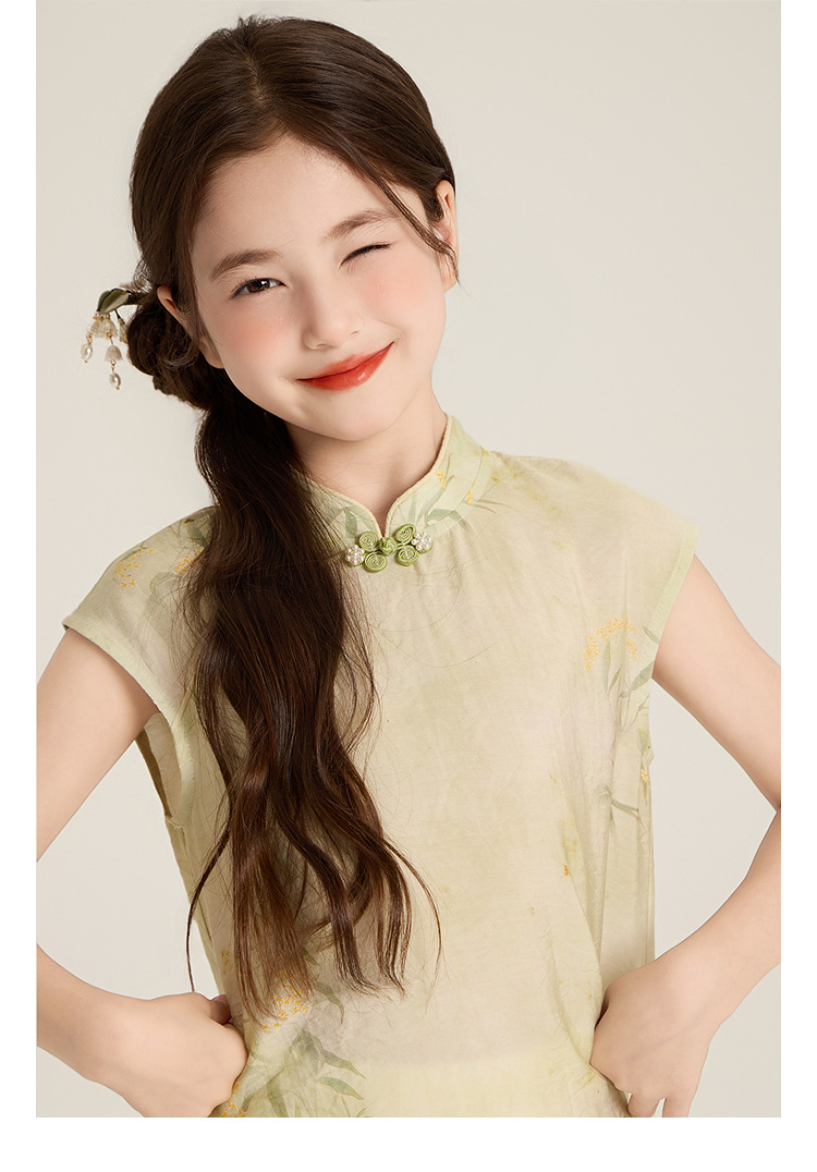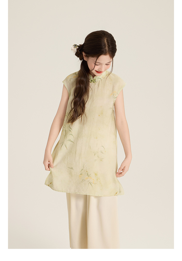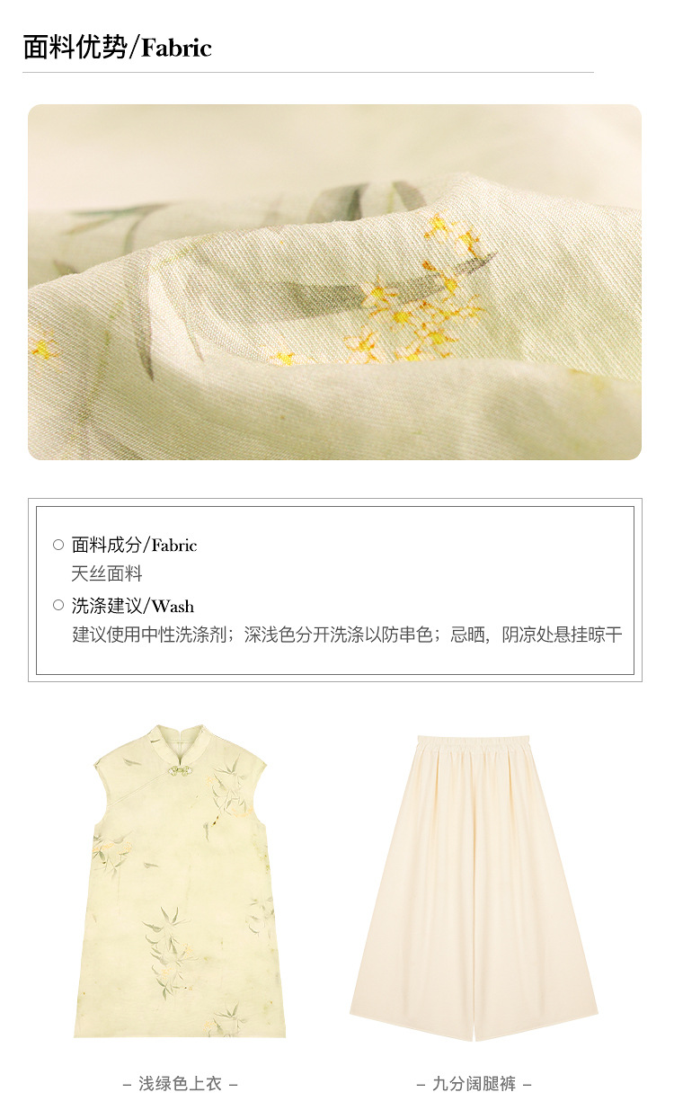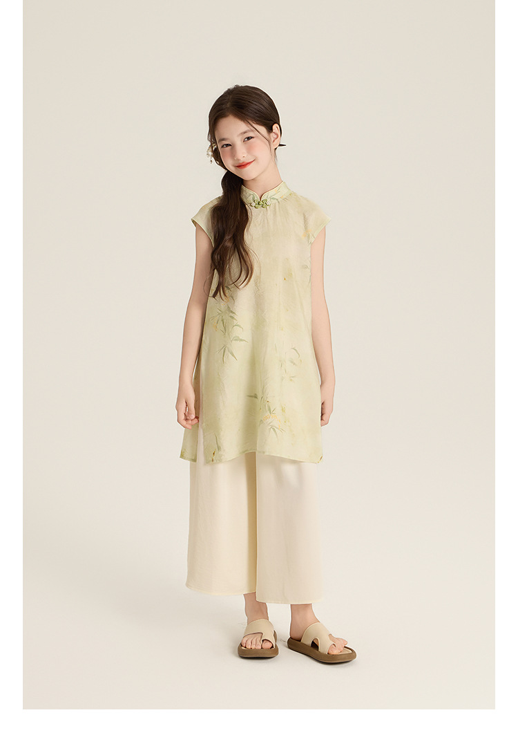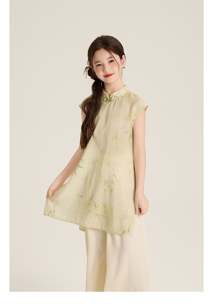 Amybaby 여아 정장 여름 2025 새로운 중국 스타일 탑 9부 와이드 팬츠 투피스 세트스토어 가기