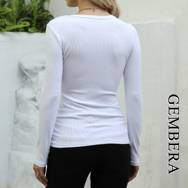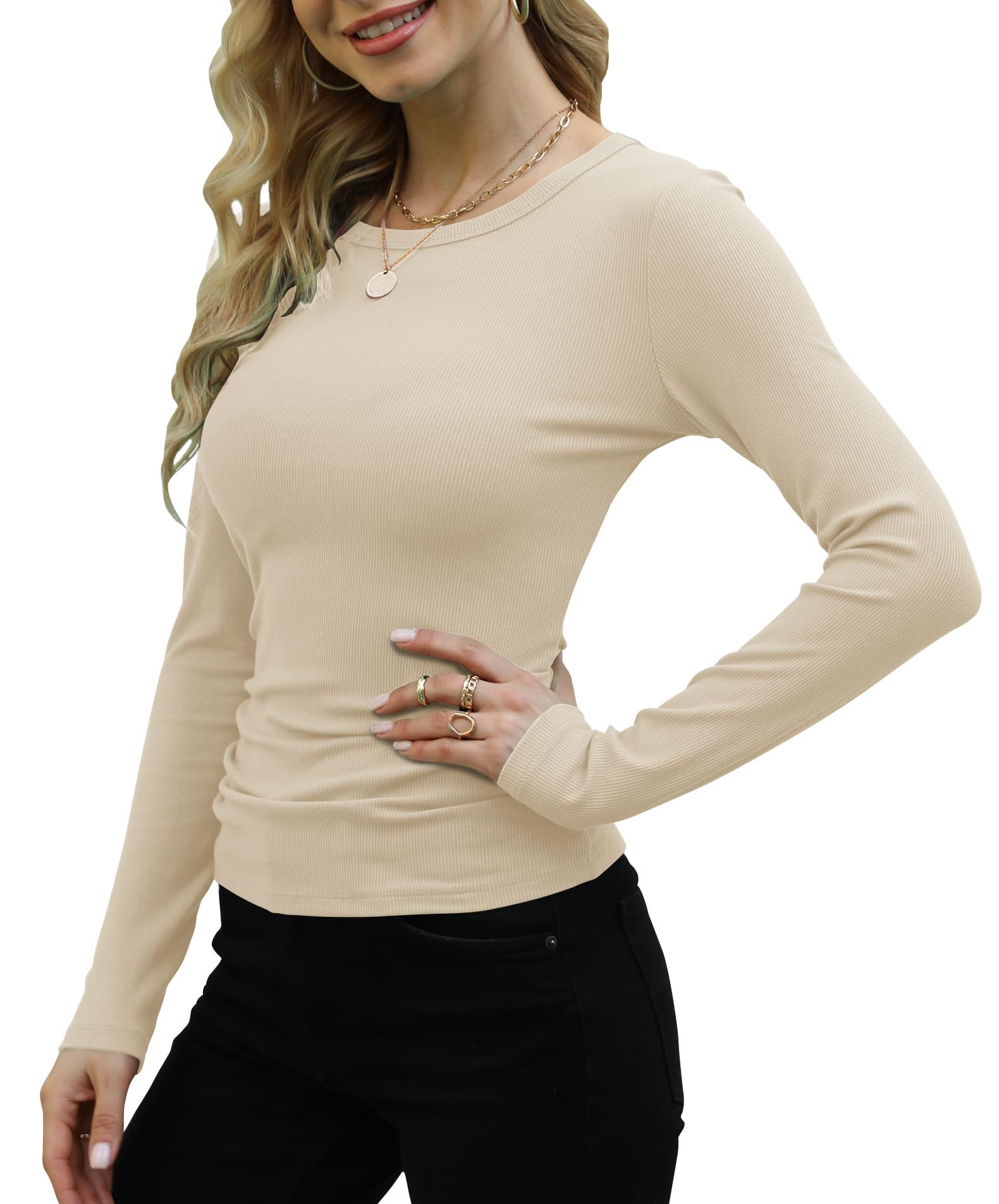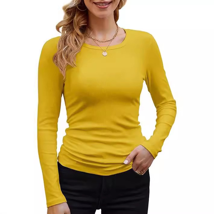 2024 크로스보더 여성 의류 Amazon 여성용 새 골지 레이온 원단 기본 라운드 넥 솔리드 컬러 긴팔 티셔츠스토어 가기