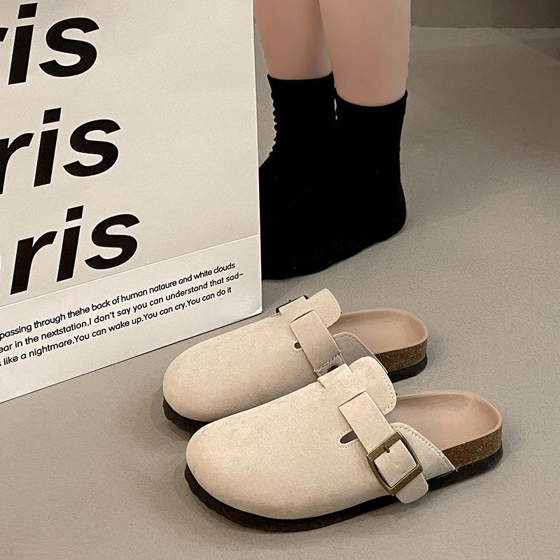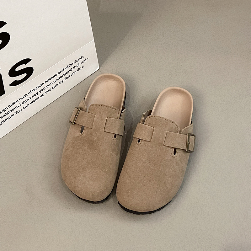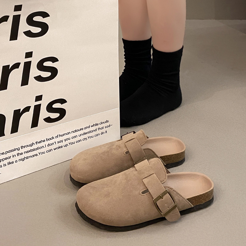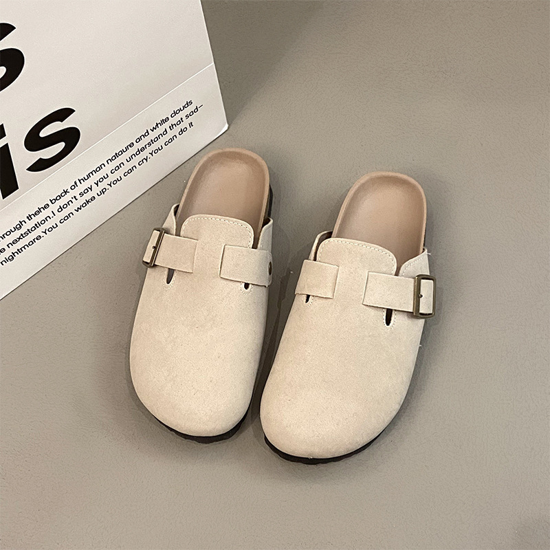 도매 복고풍 굽없는 비니 플랫 게으른 플랫 하프 슬리퍼 여성을위한 새로운 Baotou 샌들 2025스토어 가기
