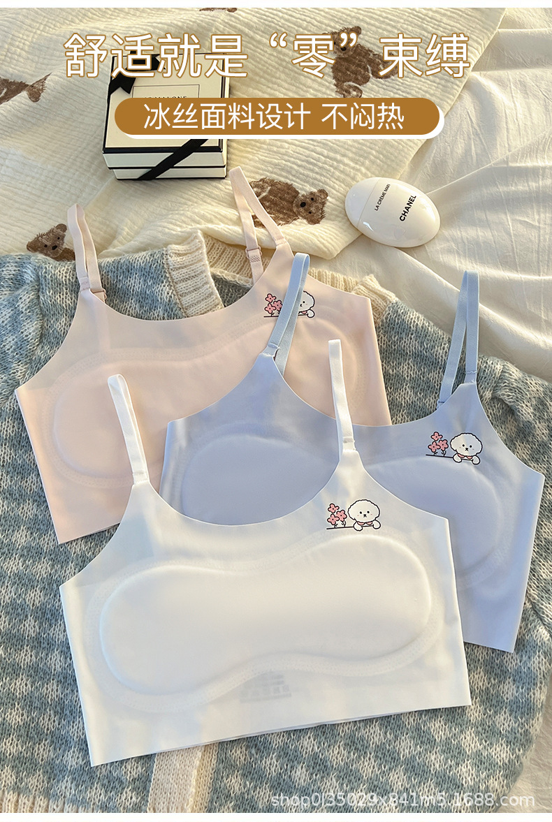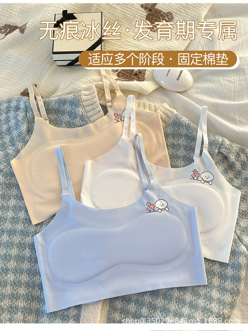 발달기 소녀 속옷 초등학교 중학교 조끼 얼음 실크 원활한 속옷 소녀 조절 가능한 어깨 끈 여름 얇은 스타일스토어 가기