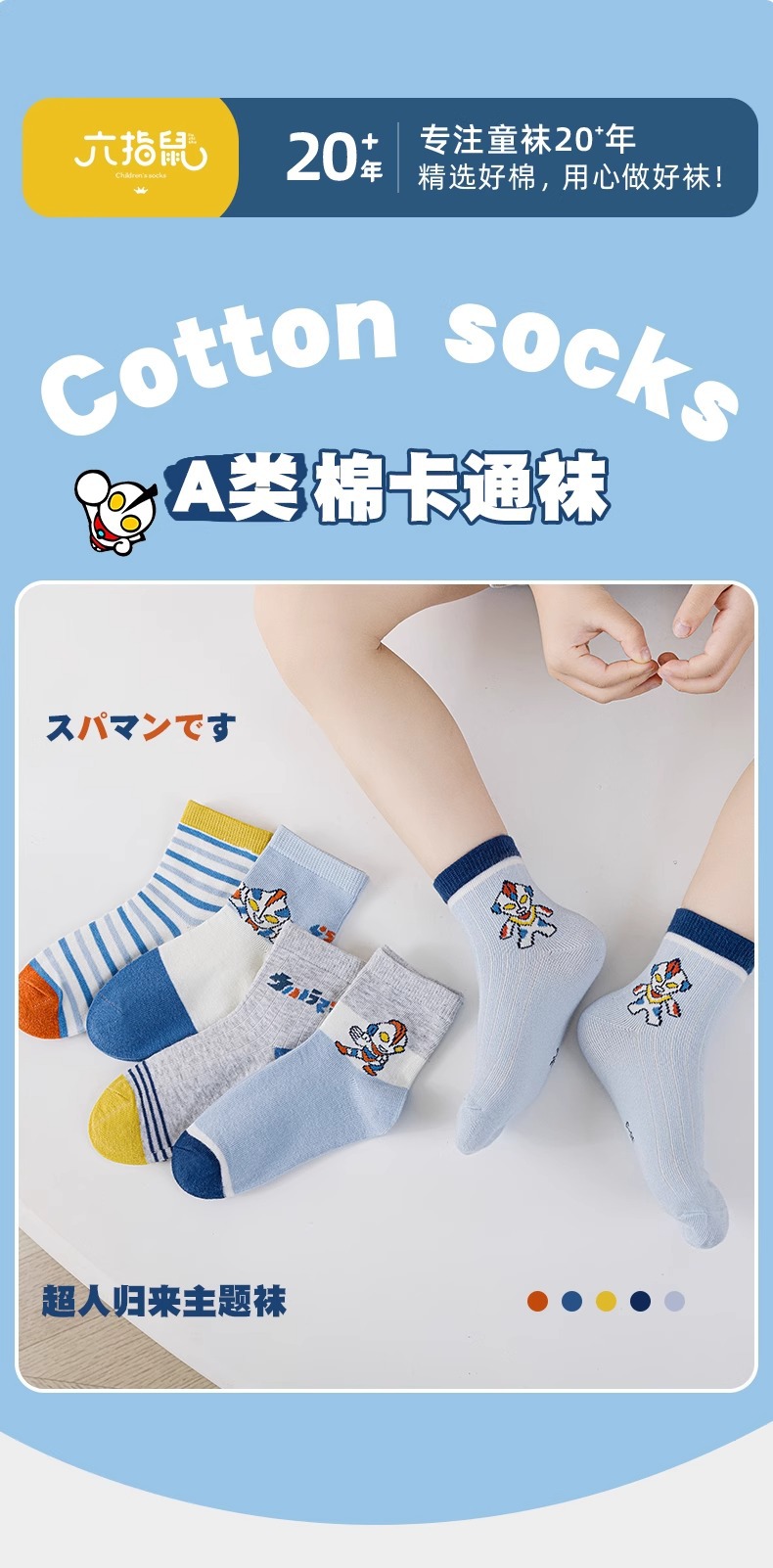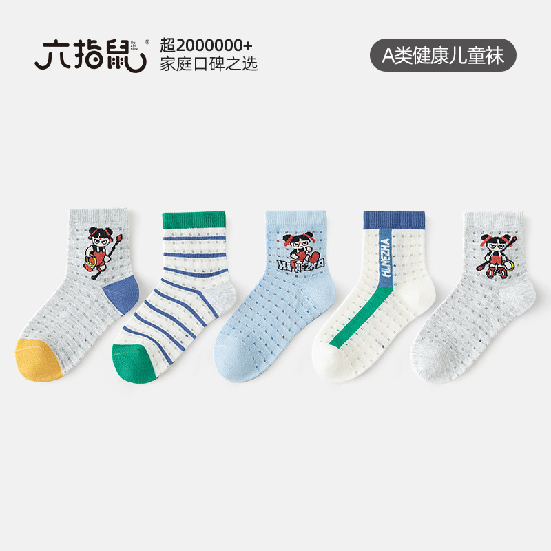 여섯 손가락 쥐 어린이 양말 소년과 아기 봄과 여름 면 양말 중대형 어린이 학생 스포츠 양말스토어 가기