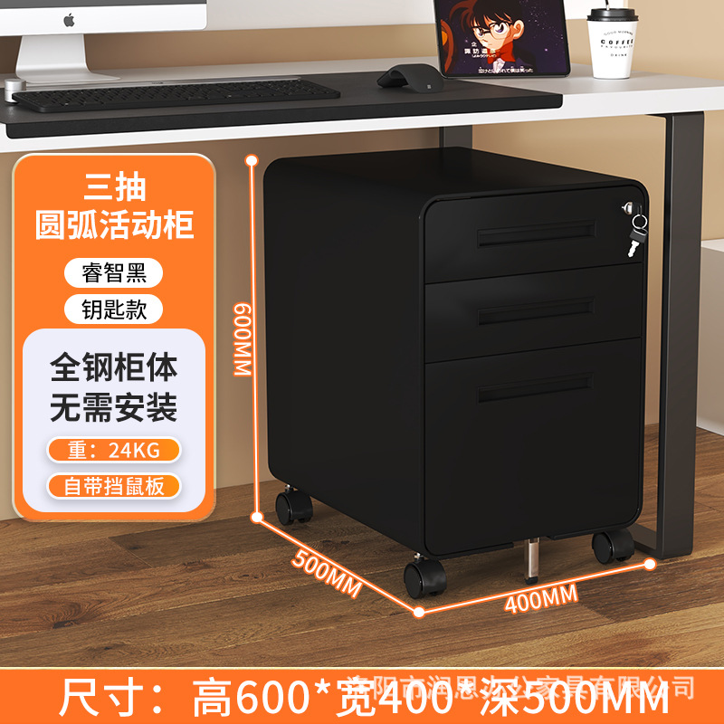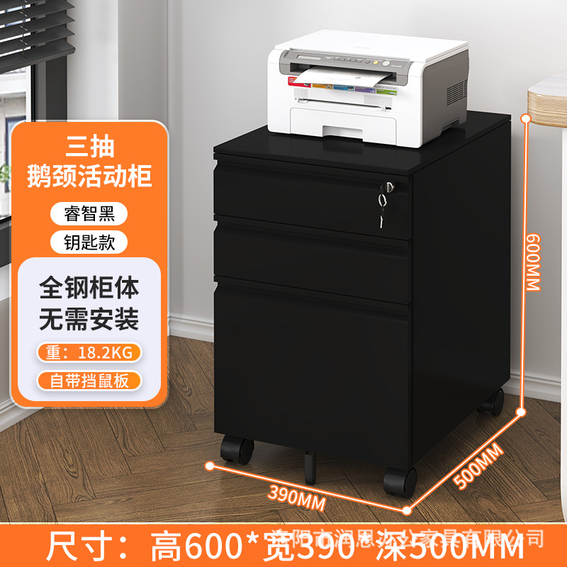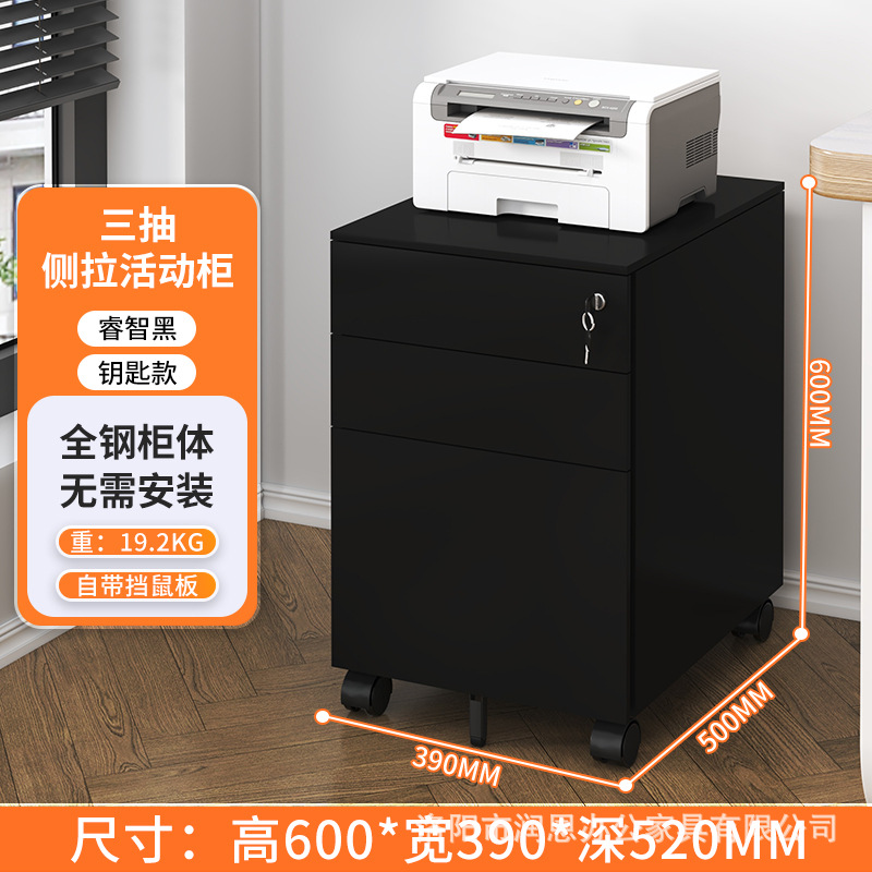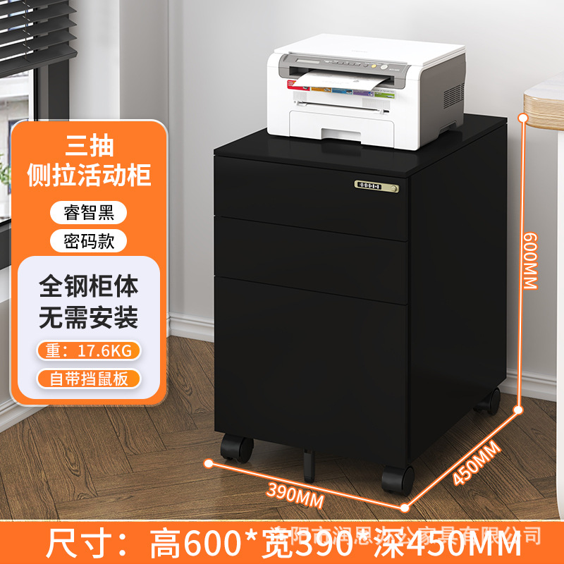 • 차분한 블랙 사이드 풀 3단 서랍 500 깊이 캐비닛