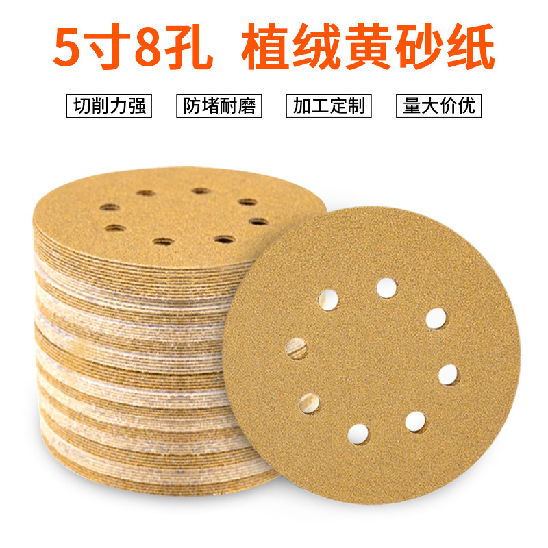 • 5인치 8홀 플록 옐로우 샌드페이퍼 100 #