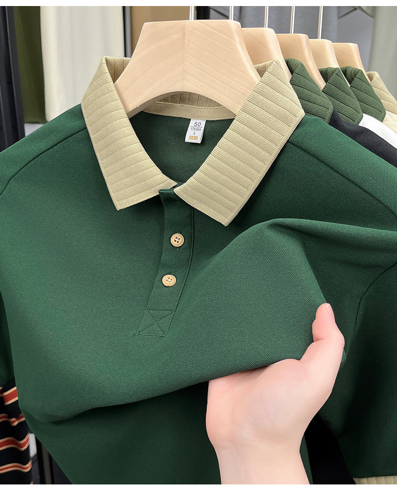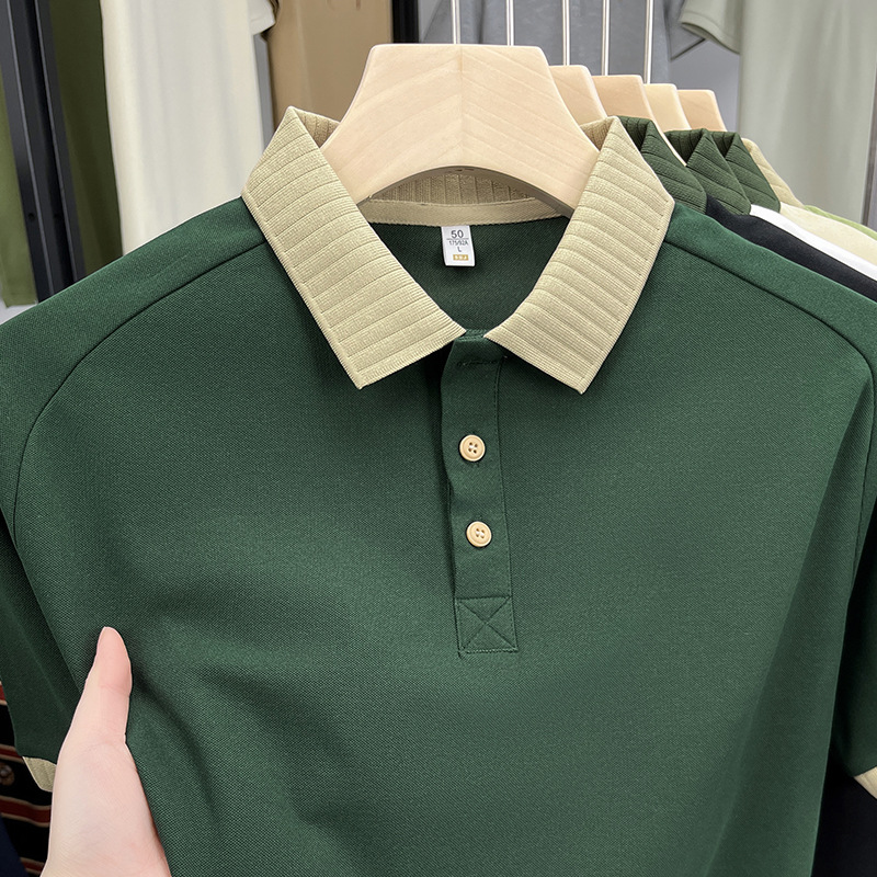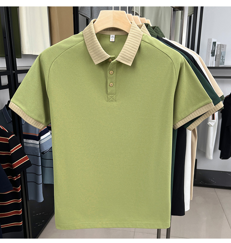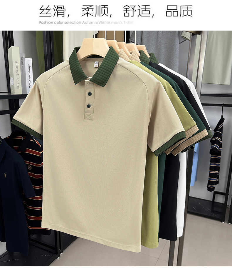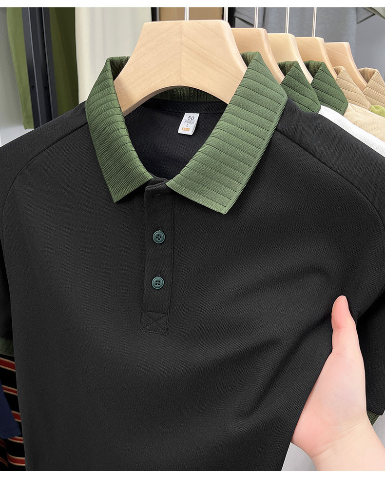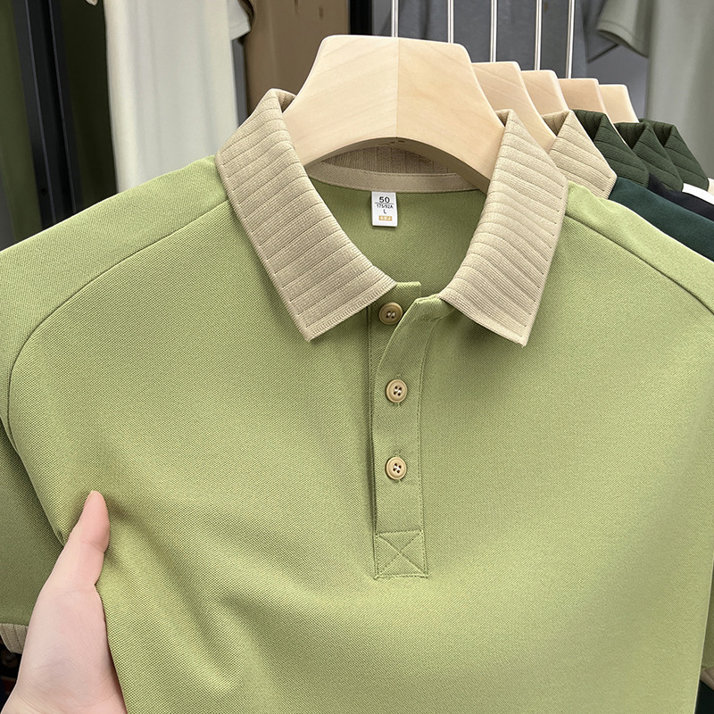하이 엔드 아이스 실크 폴로 셔츠 반팔 남성 2025 여름 새로운 패션 캐주얼 단순 옷깃 남성 티셔츠스토어 가기