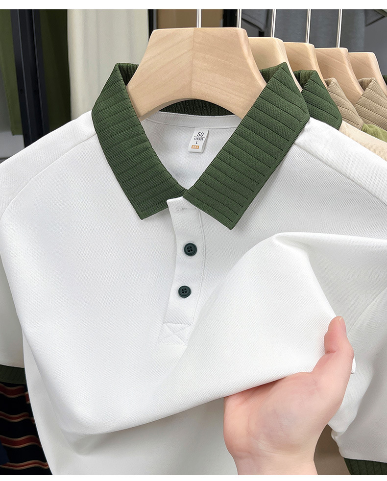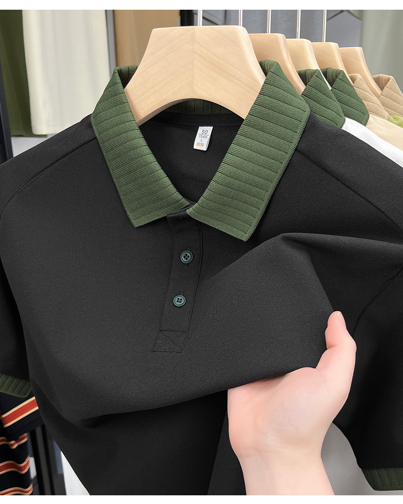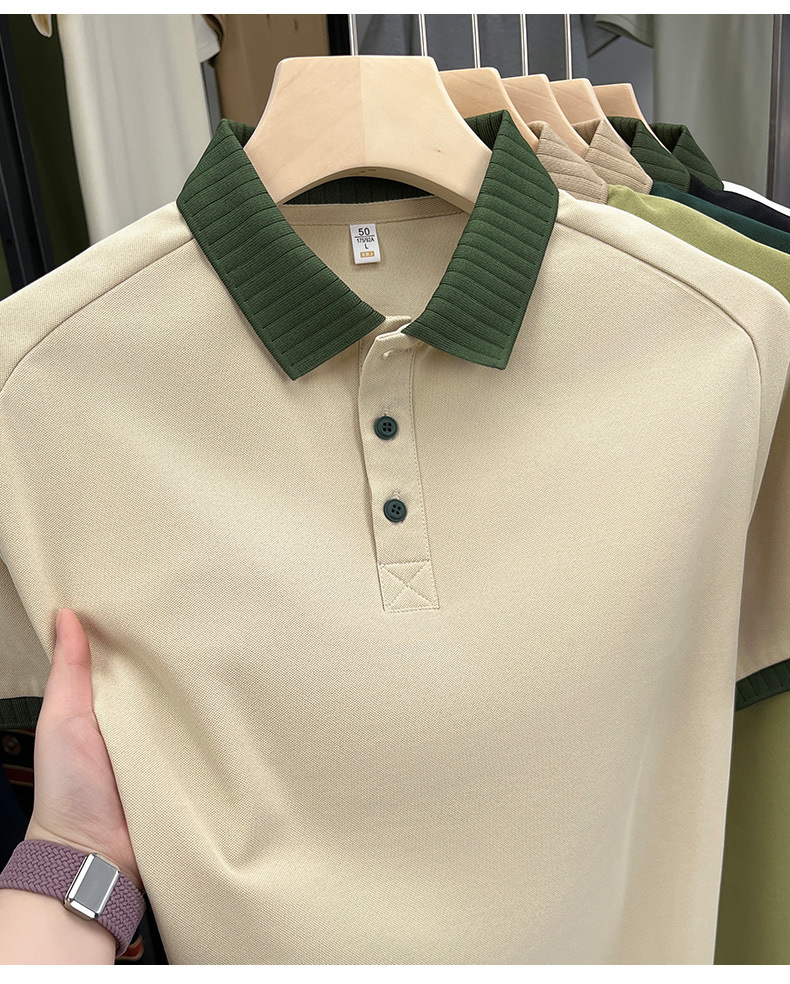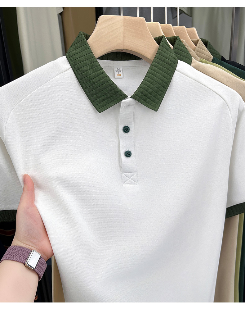 하이 엔드 아이스 실크 폴로 셔츠 반팔 남성 2025 여름 새로운 패션 캐주얼 단순 옷깃 남성 티셔츠