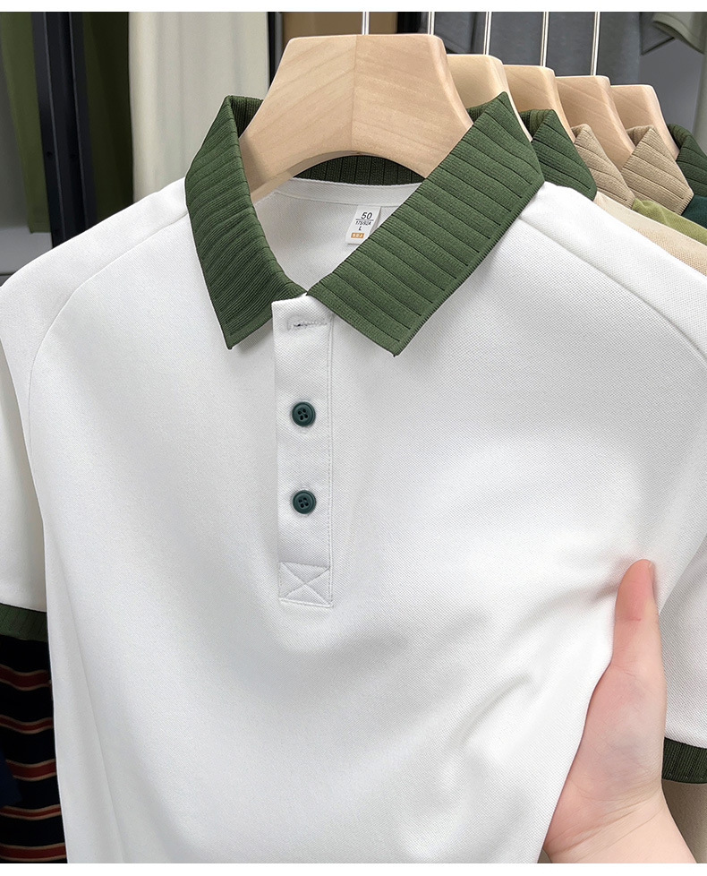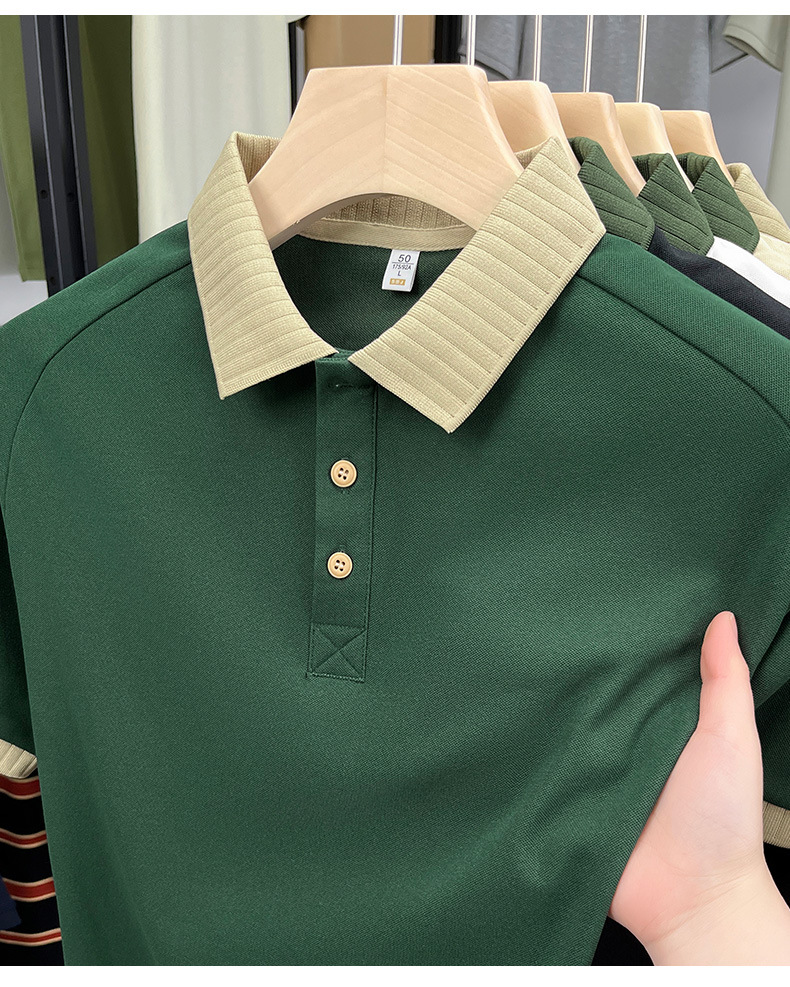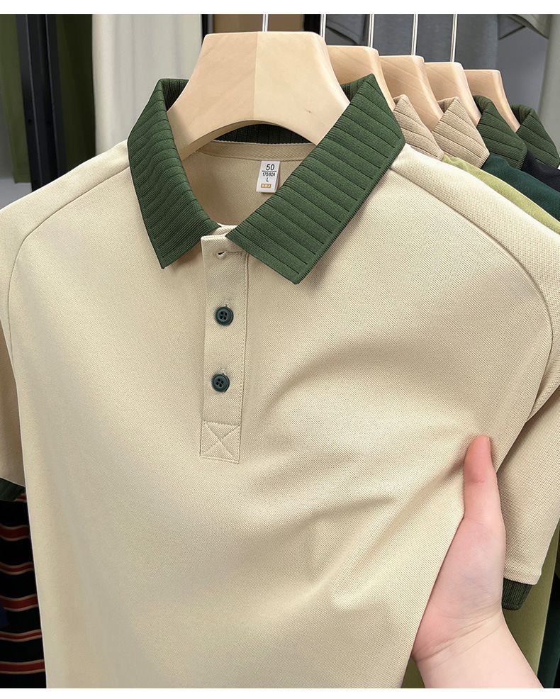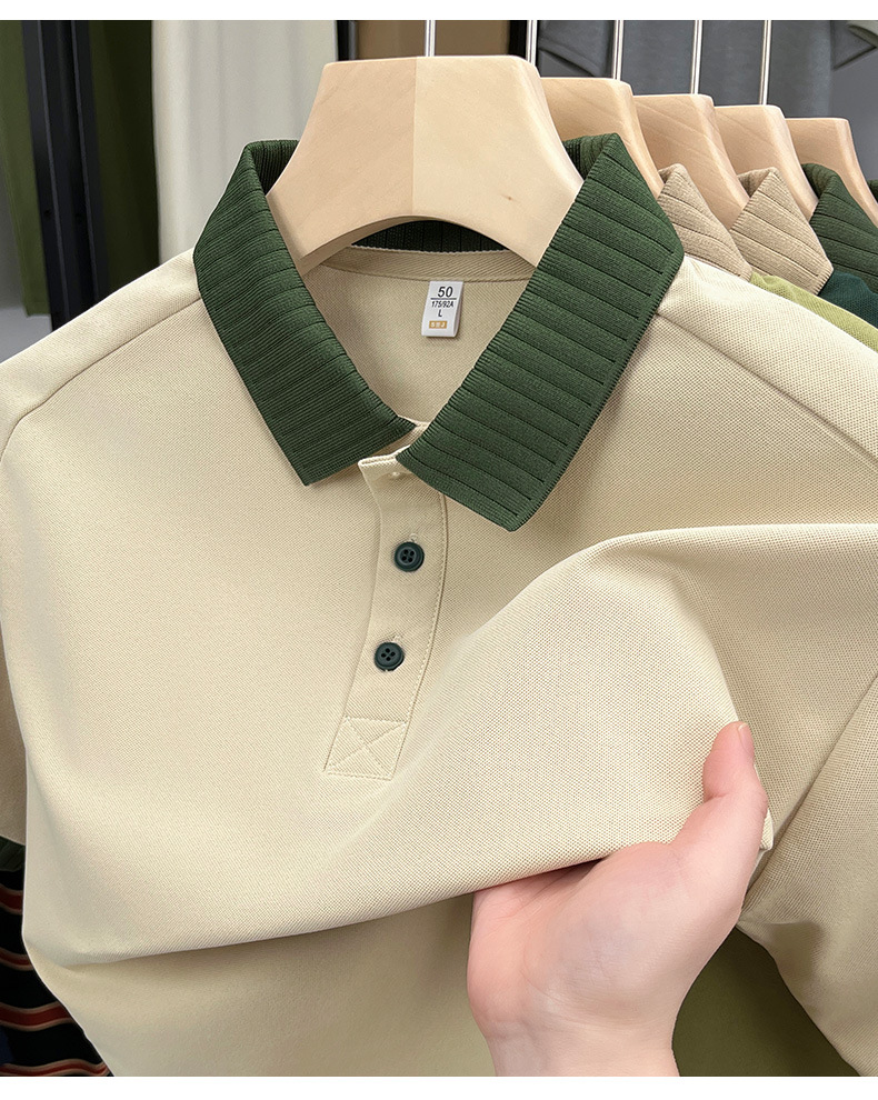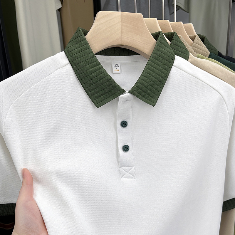 하이 엔드 아이스 실크 폴로 셔츠 반팔 남성 2025 여름 새로운 패션 캐주얼 단순 옷깃 남성 티셔츠