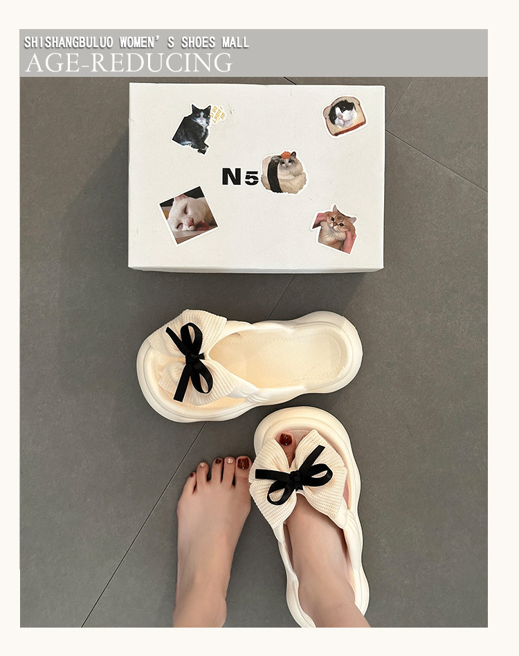 여성을위한 세련된 디자인 맞춤형 달콤한 나비 매듭 슬리퍼 2025 여름 새로운 겉옷 구름 미끄럼 방지 샌들스토어 가기