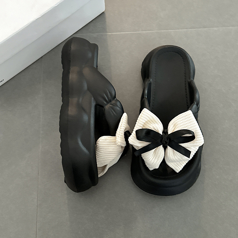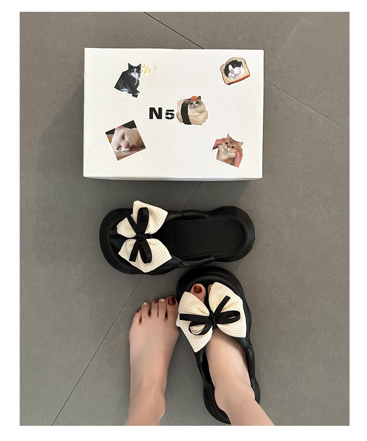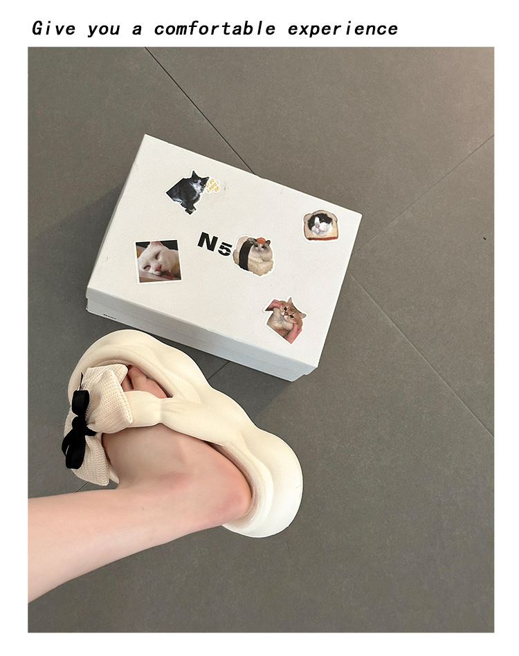 여성을위한 세련된 디자인 맞춤형 달콤한 나비 매듭 슬리퍼 2025 여름 새로운 겉옷 구름 미끄럼 방지 샌들