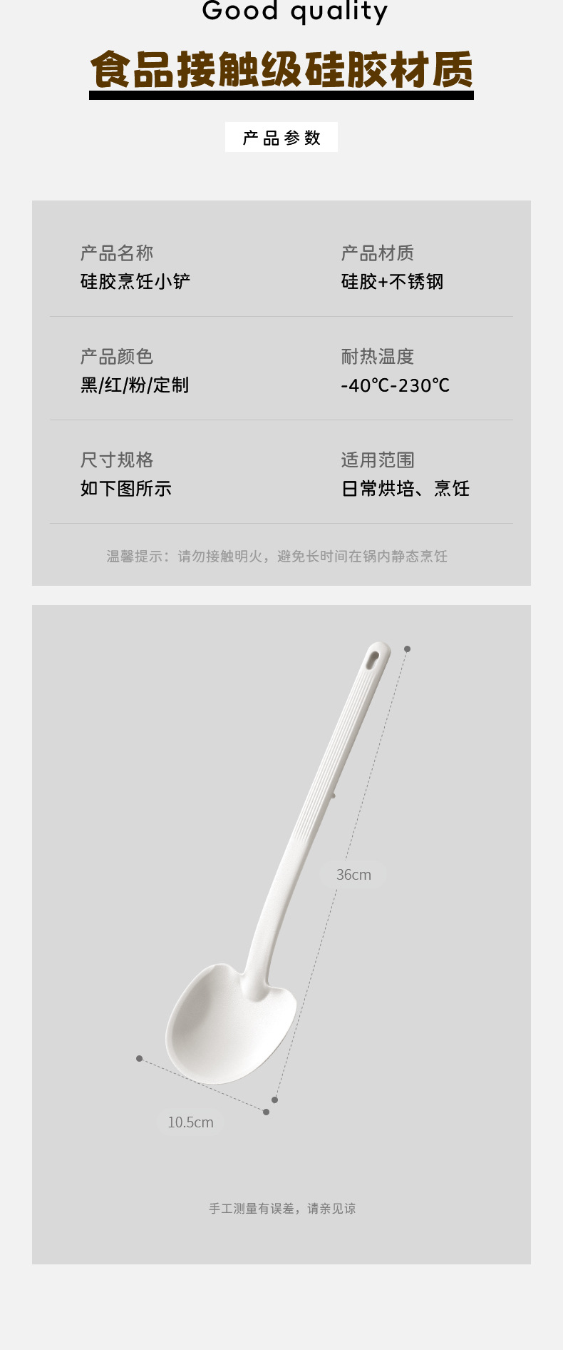 유럽 표준 실리콘 주걱, 소형 조리용 주걱, 논스틱 팬 전용 주걱, 식품 등급 고온 내성 가정용 실리콘 주걱