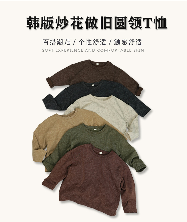 봄 트렌드~ 남녀공용 레트로 꽃무늬 캐주얼 스웨트셔츠, 새로운 다용도 아동복 티셔츠, 베이비 긴팔 하의스토어 가기