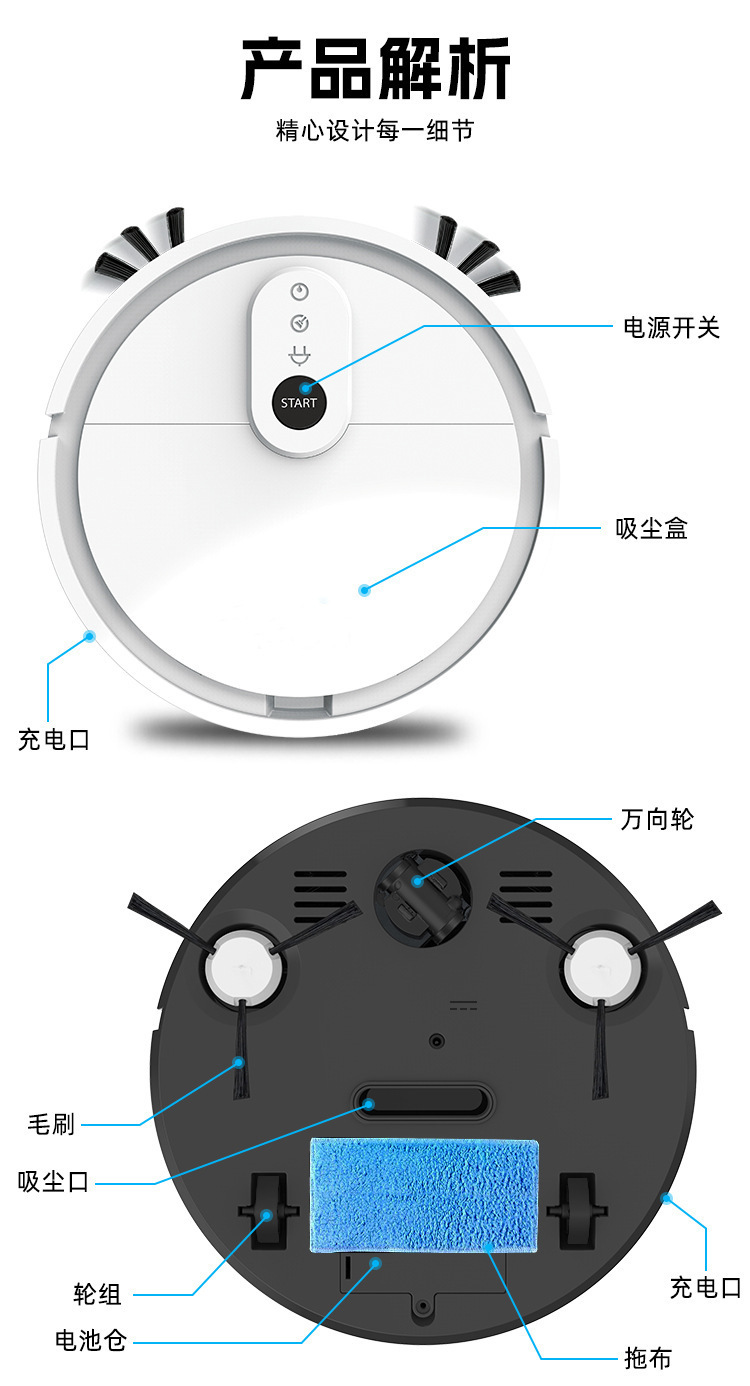인기 있는 가정용 청소, 흡입 및 걸레 일체형 기계, 게으른 자동 청소 로봇, 애완동물 털 청소 기계