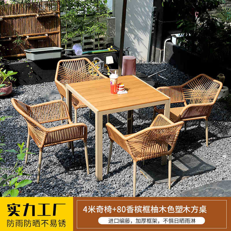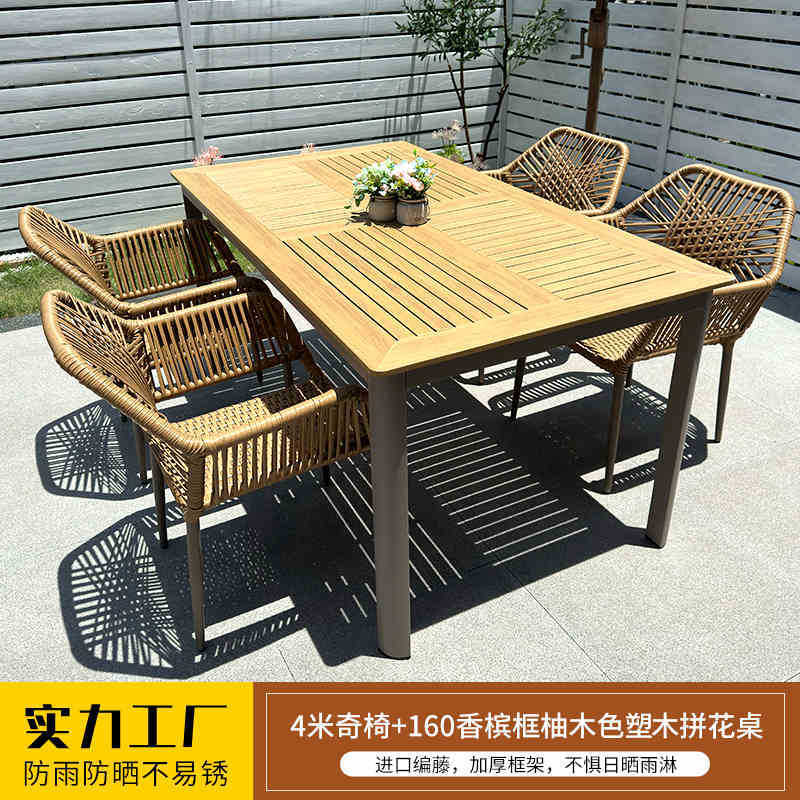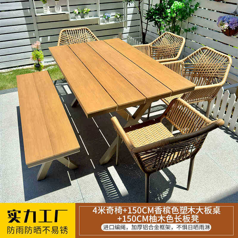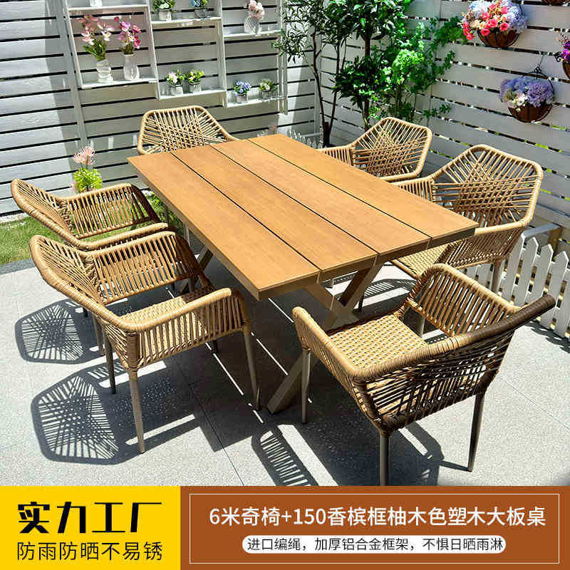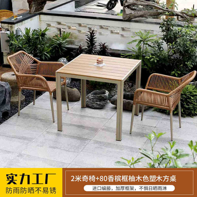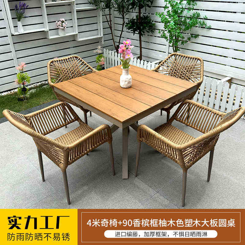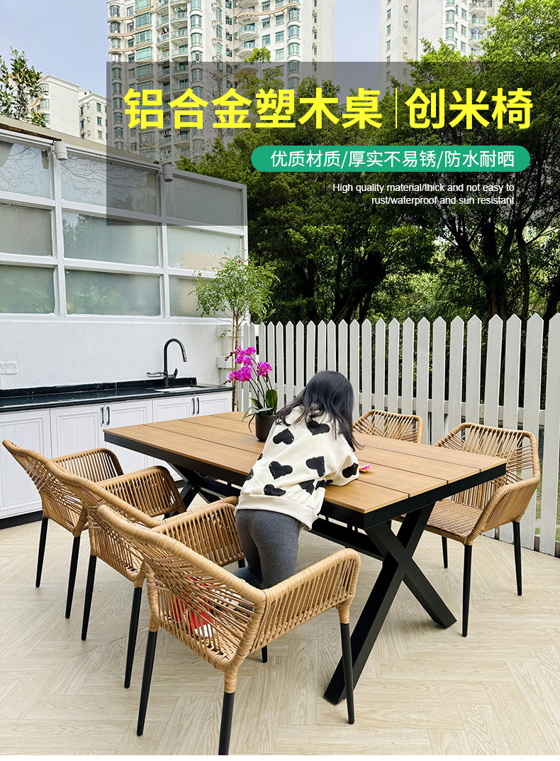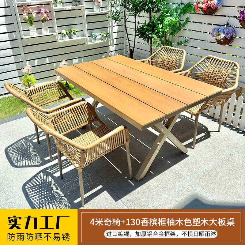 야외 테이블과 의자, 알루미늄 예술적 레저 조합, 실내 및 실외 플라스틱 목재 테이블, 안뜰 야외 정원, 빌라, B&B 레저 의자