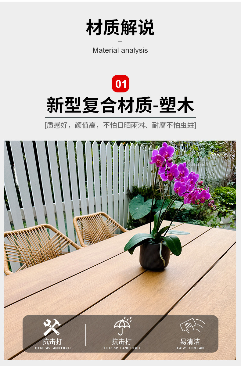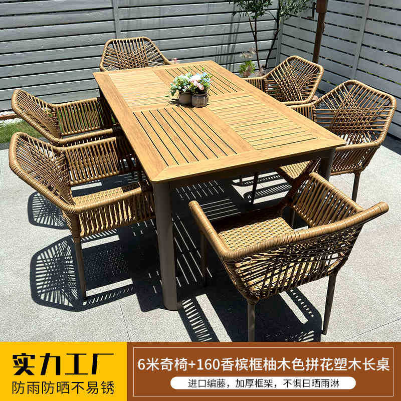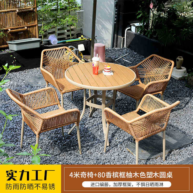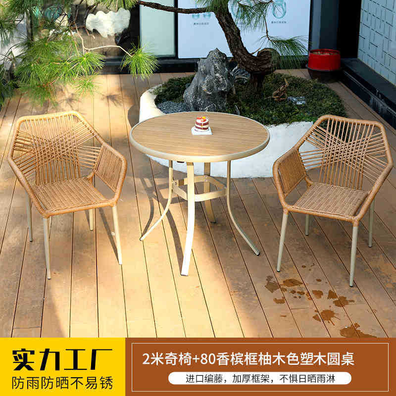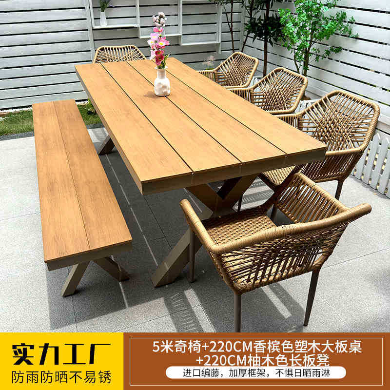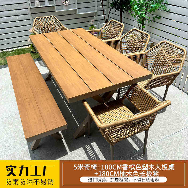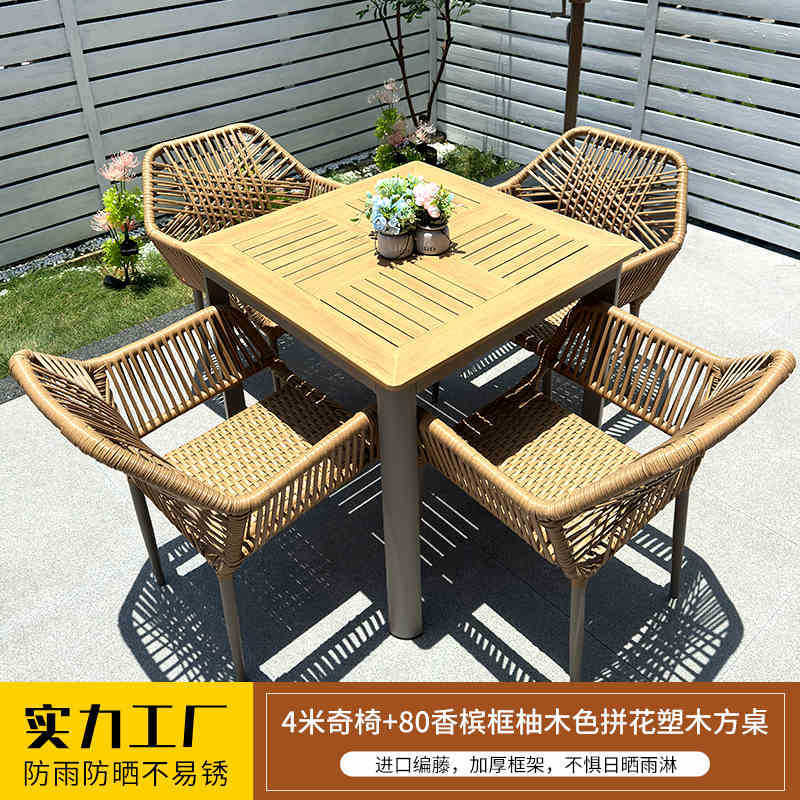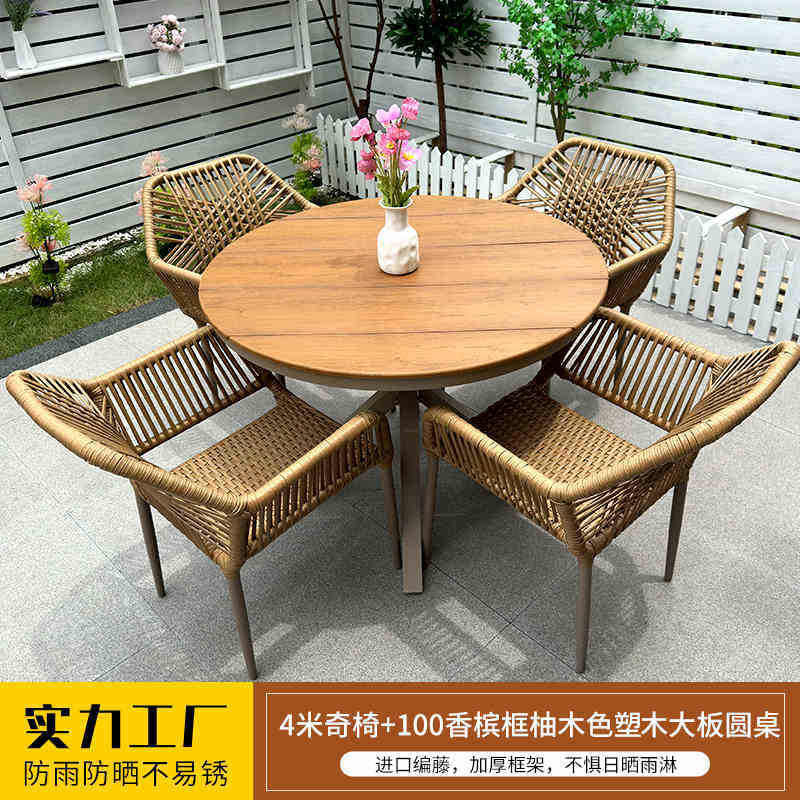 야외 테이블과 의자, 알루미늄 예술적 레저 조합, 실내 및 실외 플라스틱 목재 테이블, 안뜰 야외 정원, 빌라, B&B 레저 의자