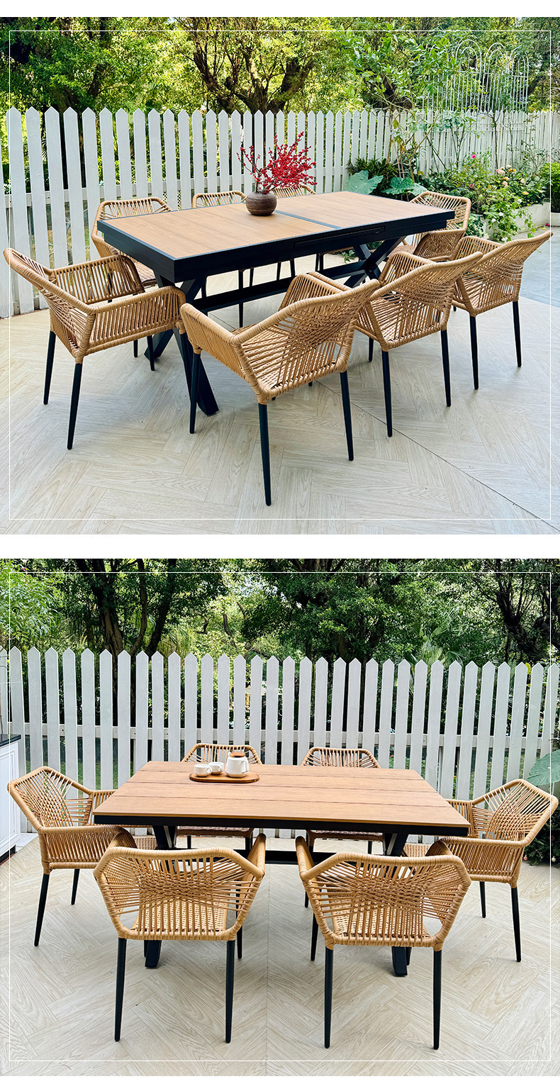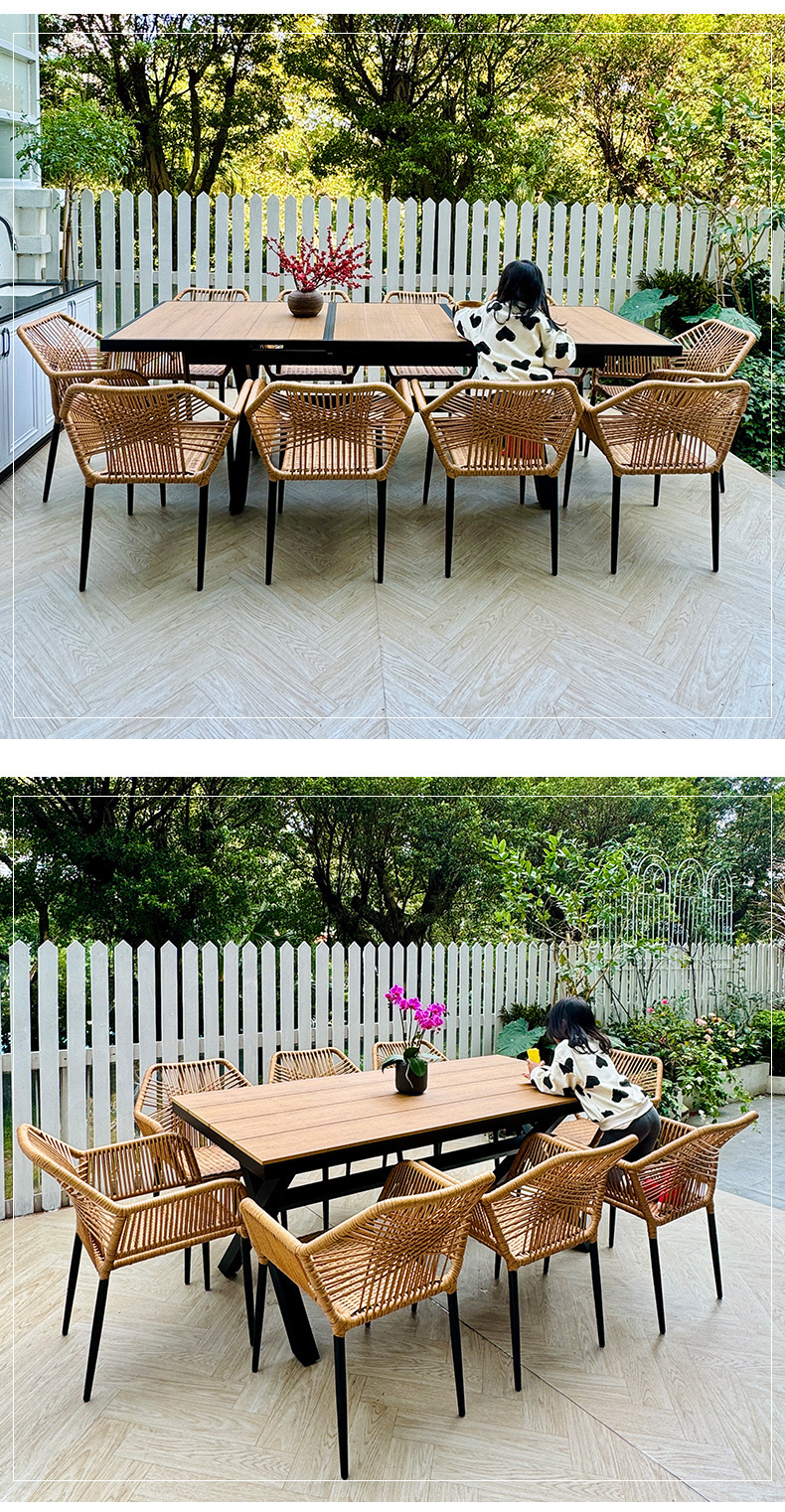 야외 테이블과 의자, 알루미늄 예술적 레저 조합, 실내 및 실외 플라스틱 목재 테이블, 안뜰 야외 정원, 빌라, B&B 레저 의자스토어 가기