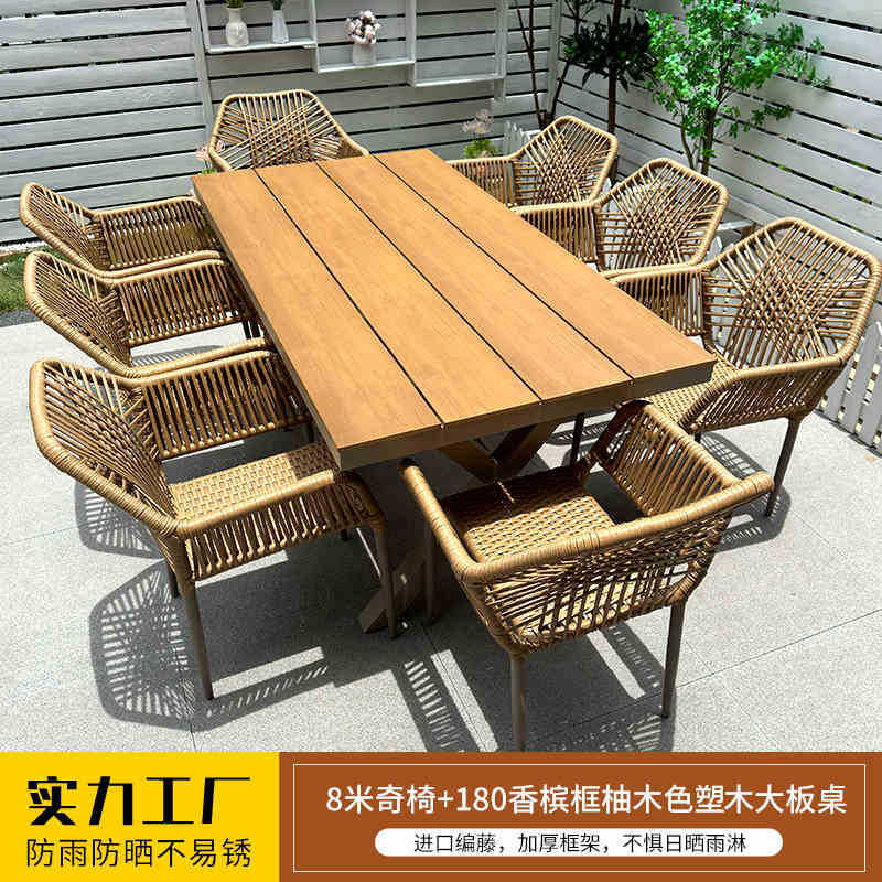 • 8m 이상한 의자 + 220 샴페인 프레임 티크 컬러 플라스틱 나무 대형 보드 테이블