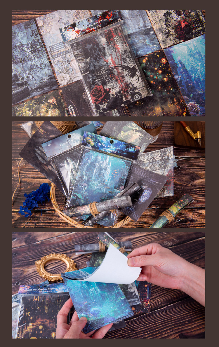 시간의 잔상 소재 종이 복고풍 숲 비밀 야경 절단 배경 핸드북 기본 장식 콜라주 스티커스토어 가기