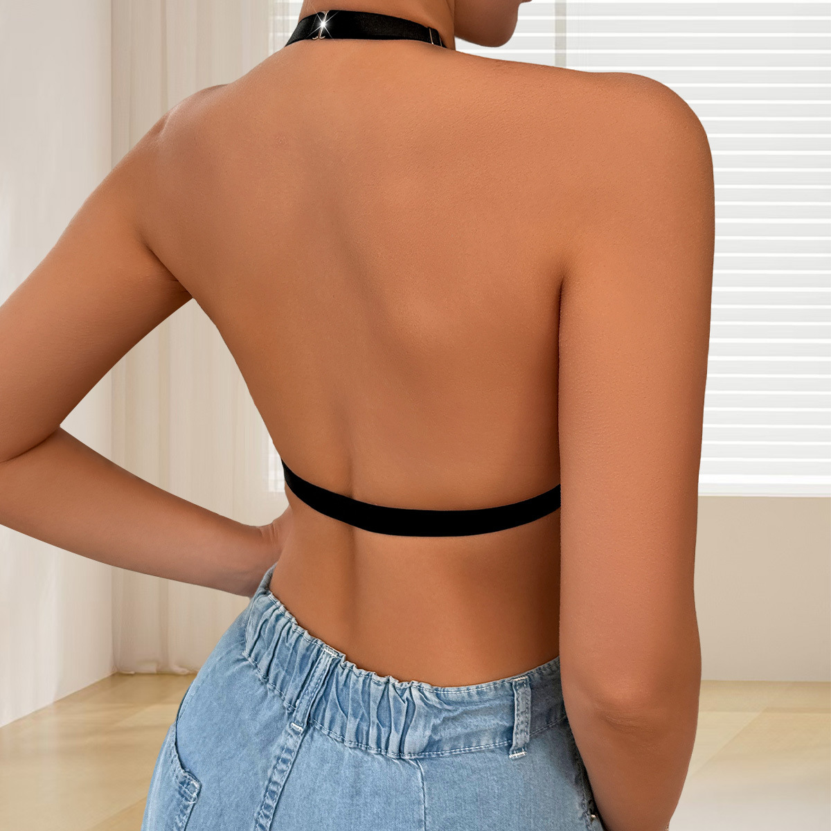 외국 무선 레이스 브라, 앞 단추, 조절 가능한 홀터넥 스트랩, 가슴 수축 및 등 미용 브라