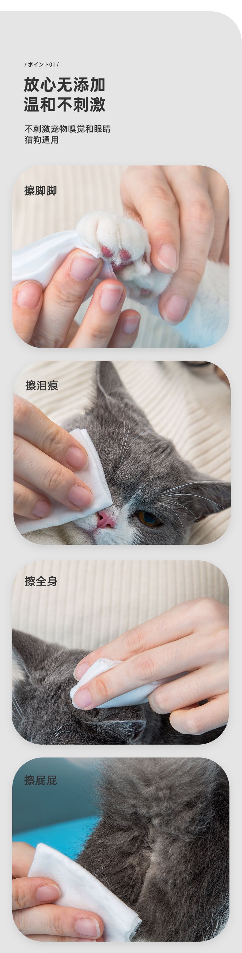 앨리스 애완동물 물티슈, 항균 고양이 물티슈, 눈물 얼룩 개 발 닦기, 몸 탈취 및 청소 물티슈