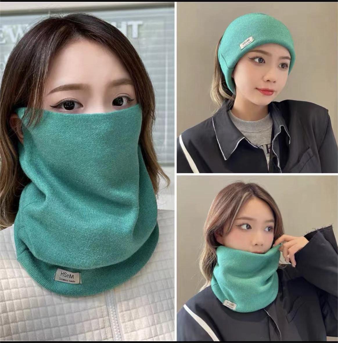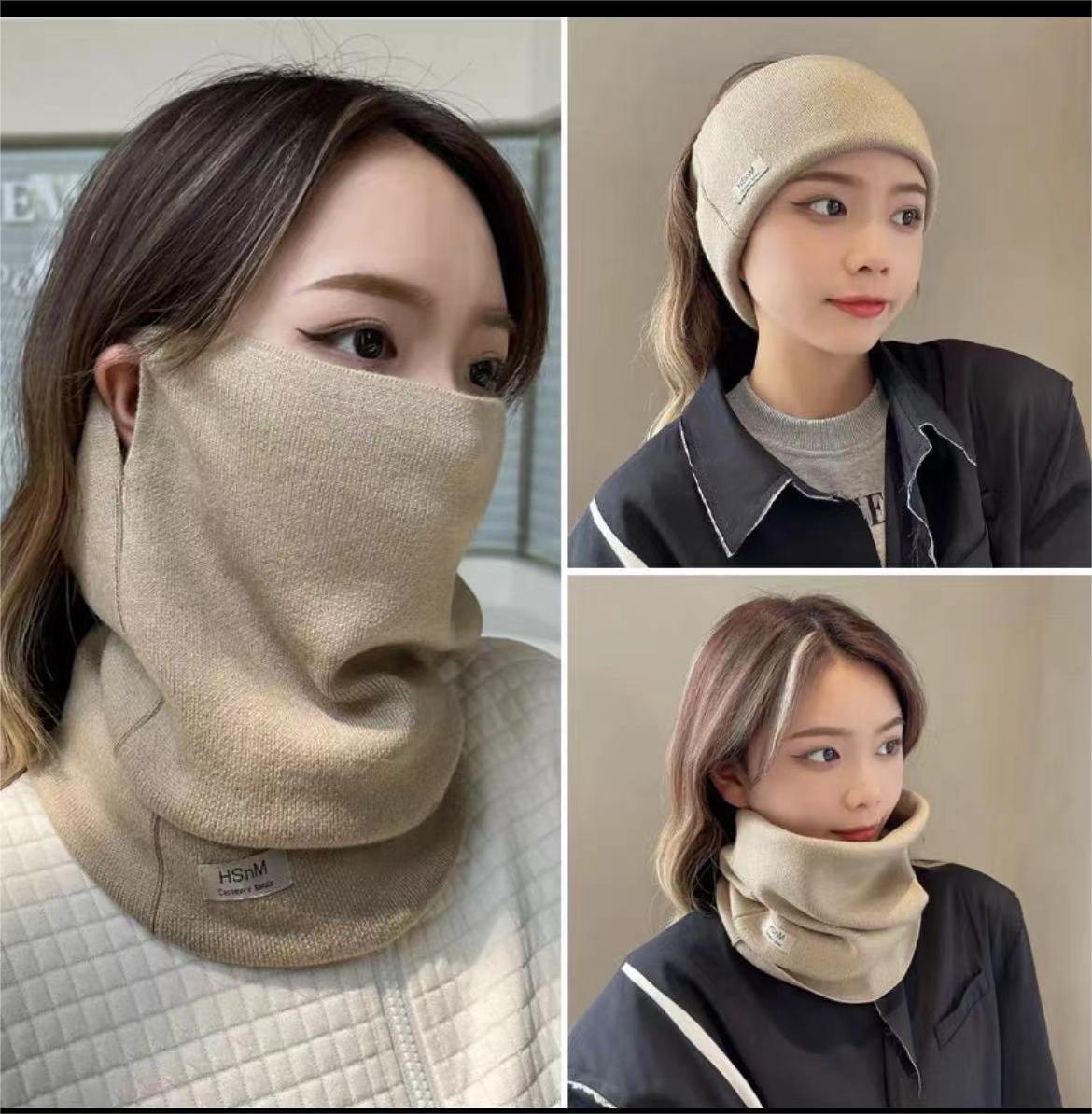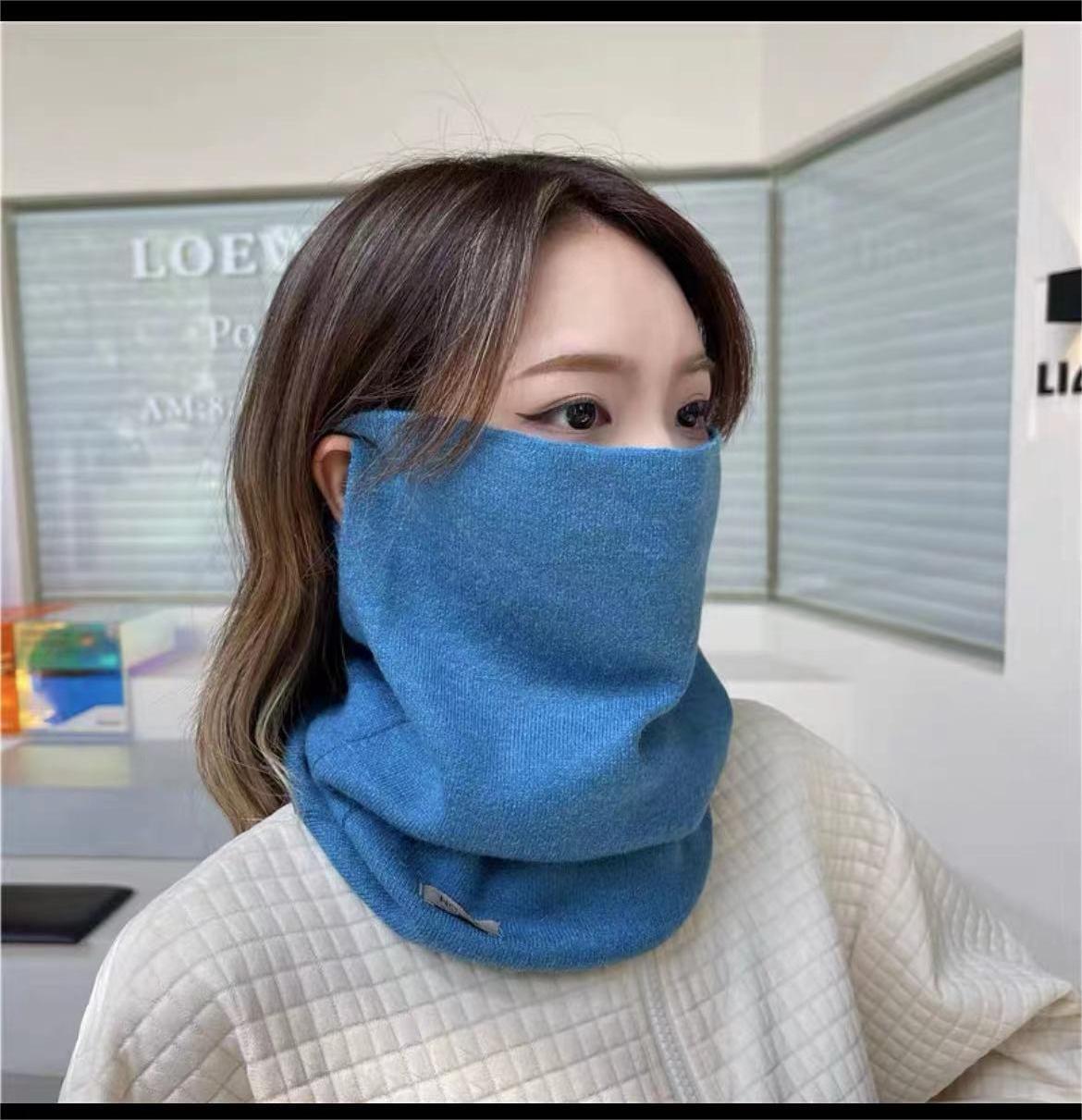 가을 겨울 단색 다용도 방한 여성용 스카프, 넥워머, 귀덮개 니트 마스크, 목 보호대스토어 가기