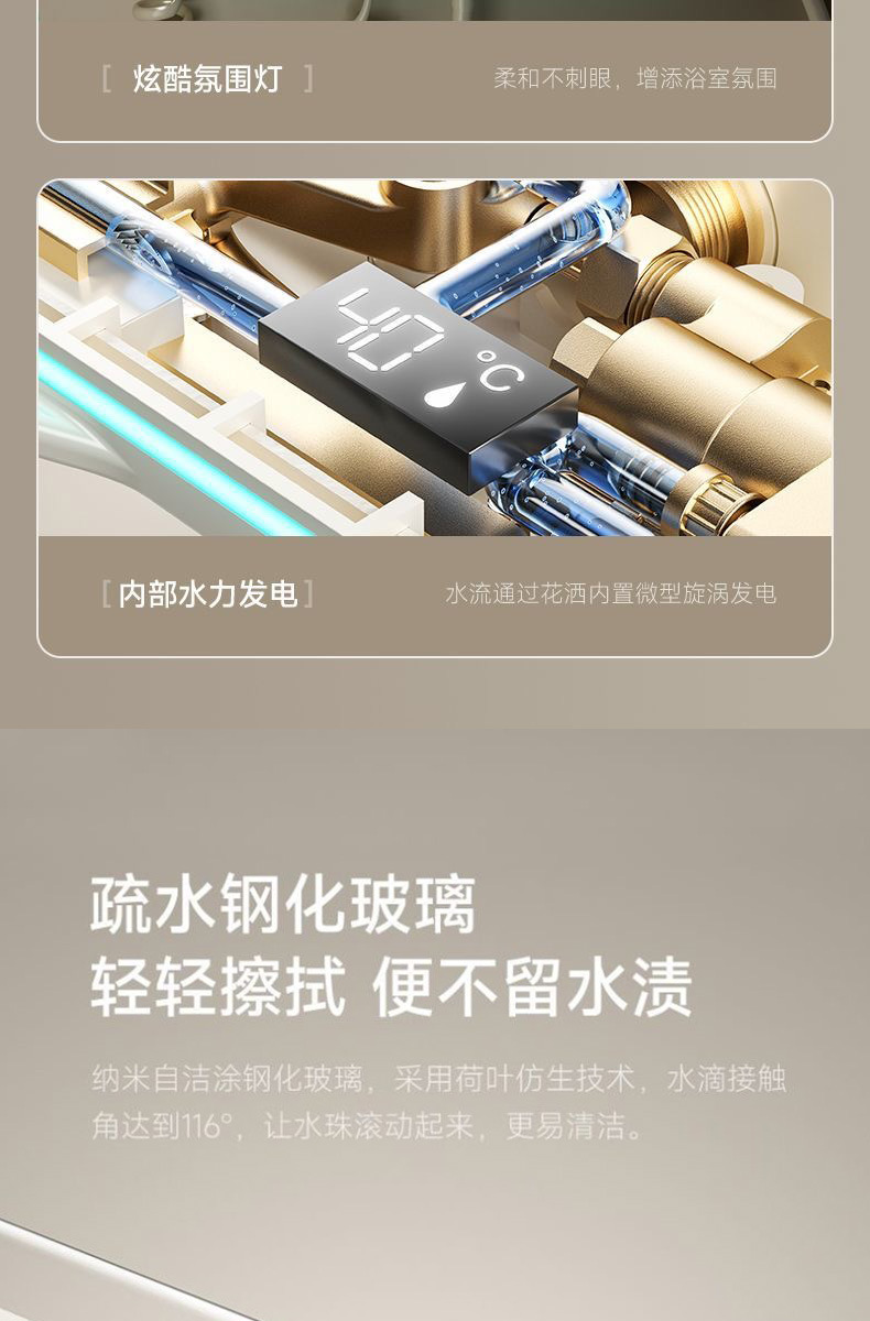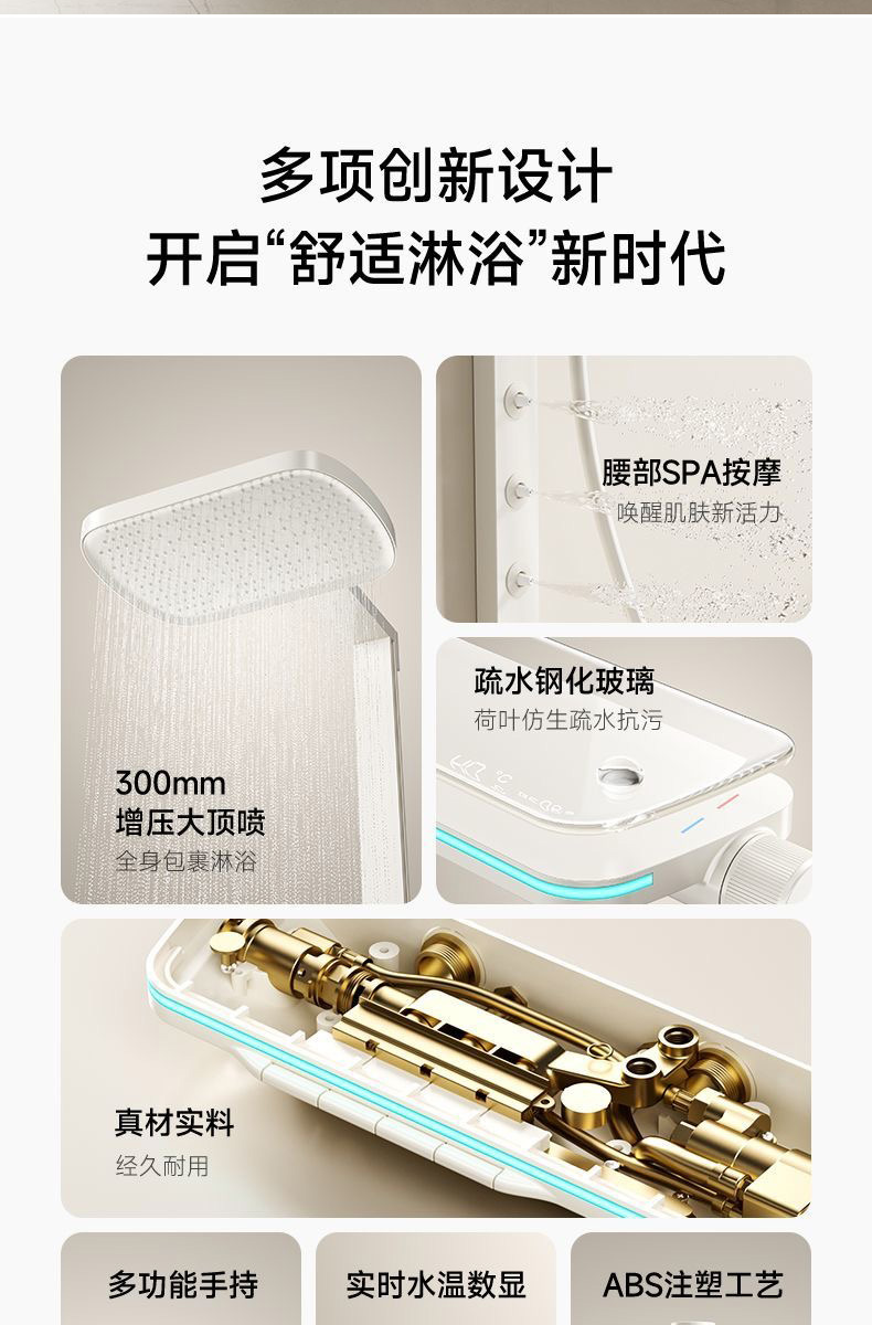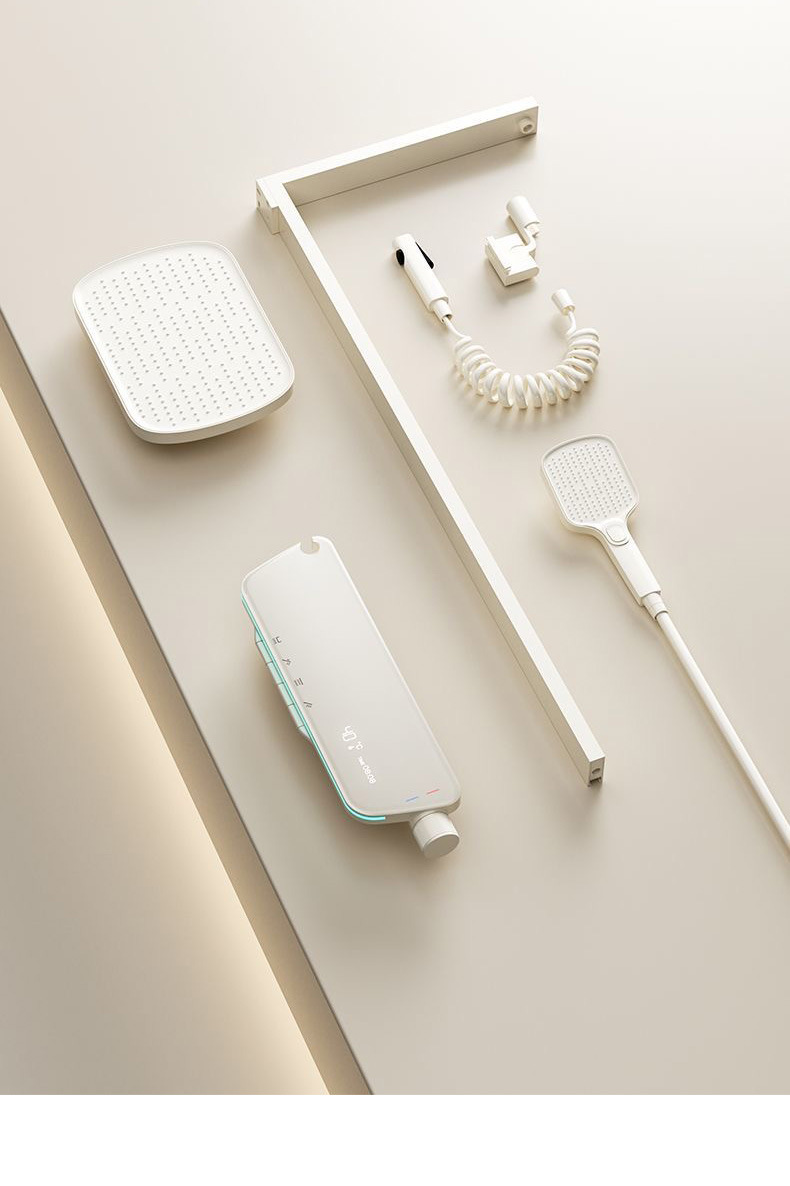독일 GOGO 밀크 화이트 디지털 디스플레이 샤워 헤드 세트 주변 조명 홈 욕실 가압 레인 샤워 헤드 샤워기스토어 가기