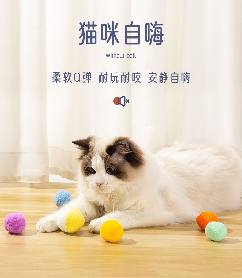 고양이 장난감 플러시 공, 다채로운 공, 치아 청소 공, 고양이를 위한 재미있는 대화형 애완 동물 장난감, 무음 공, 무지개 공
