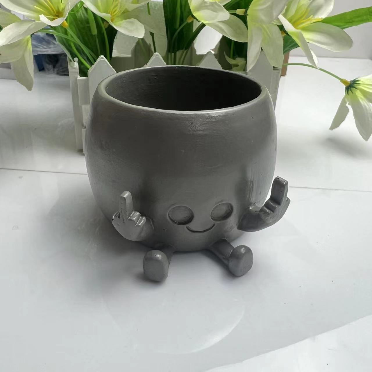 국경을 넘는 창의적인 두 손으로 중지 손가락 화분 장식품, 집 안뜰 디자인, 화분 예술, 귀여운 장식품