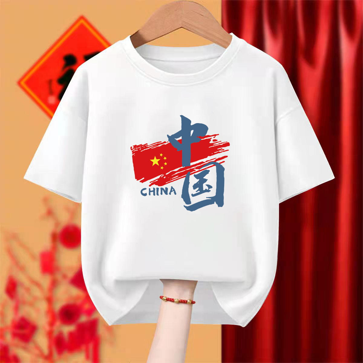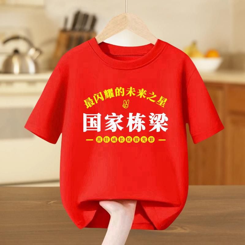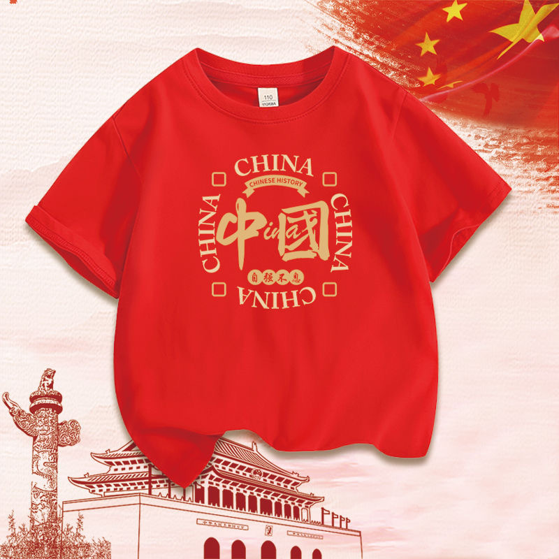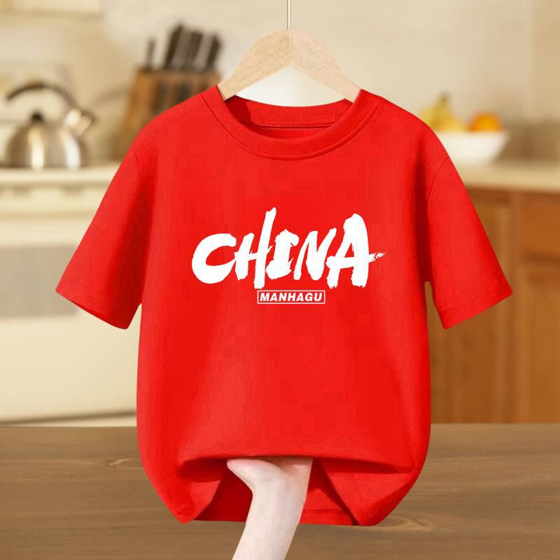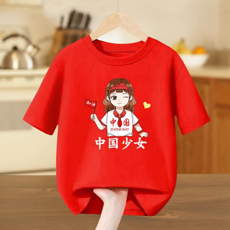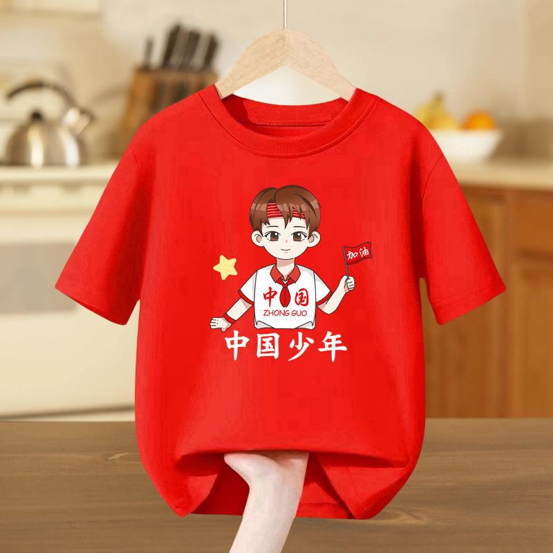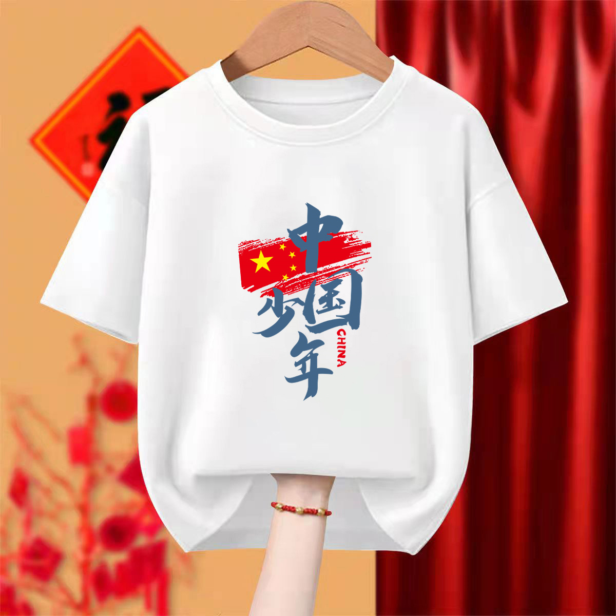 중국어 단어가 적힌 어린이 반팔 티셔츠 학생 애국 청소년 국가 트렌드 클래스 유니폼 공연 합창 의류