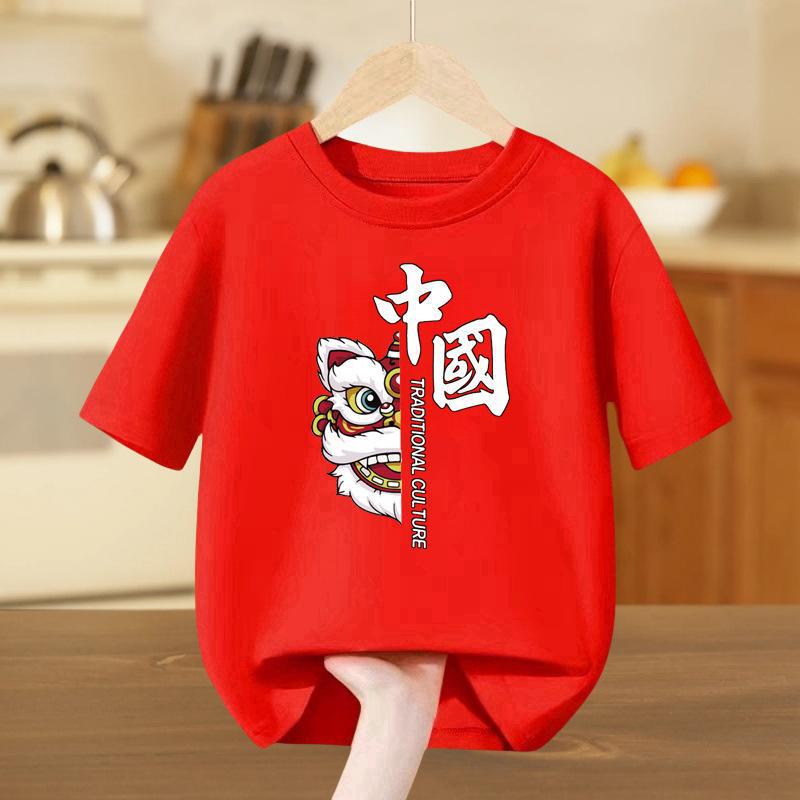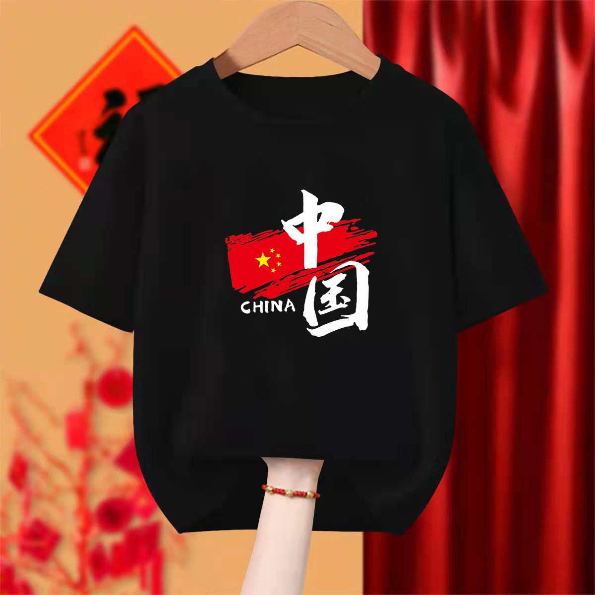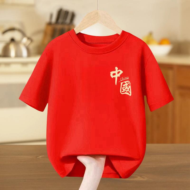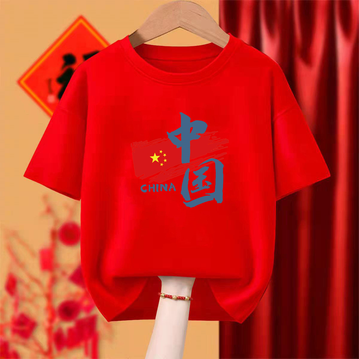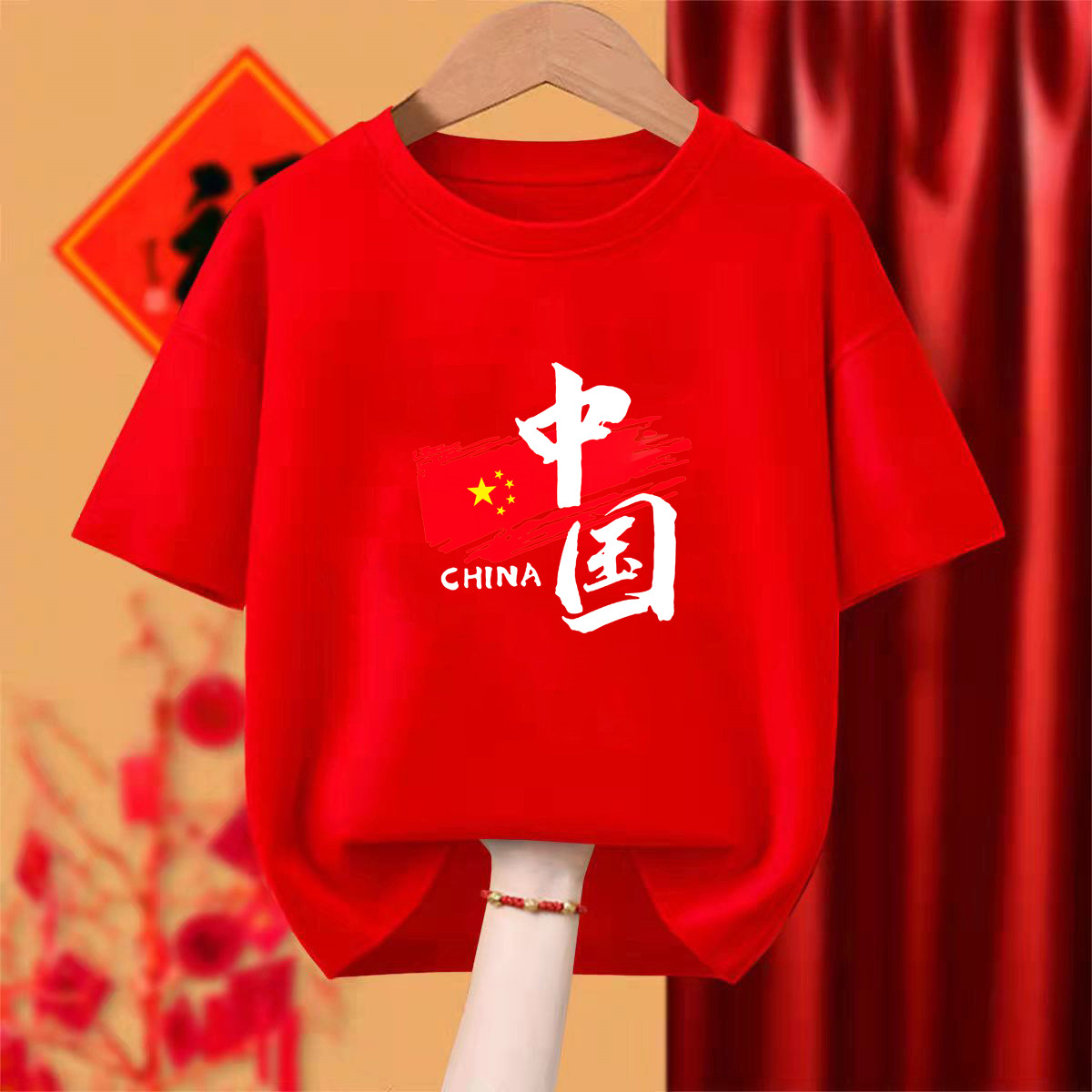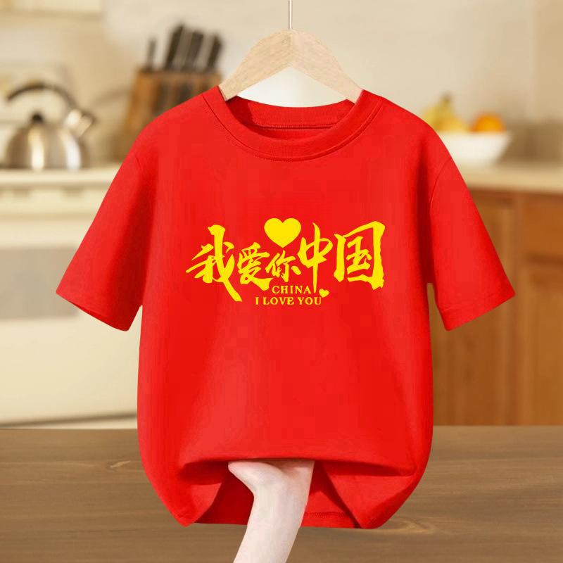 중국어 단어가 적힌 어린이 반팔 티셔츠 학생 애국 청소년 국가 트렌드 클래스 유니폼 공연 합창 의류