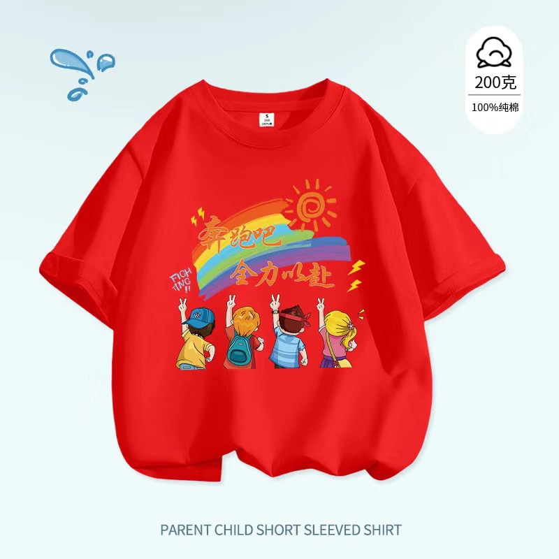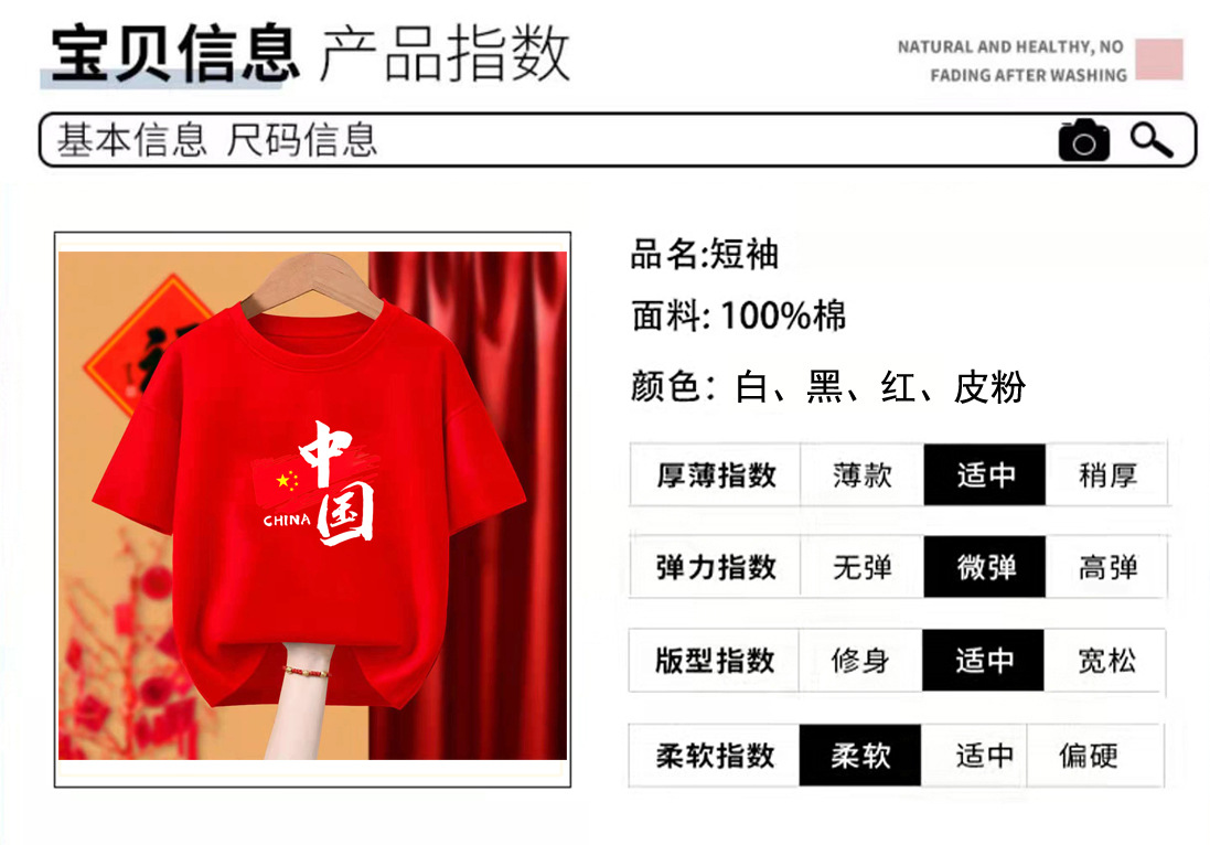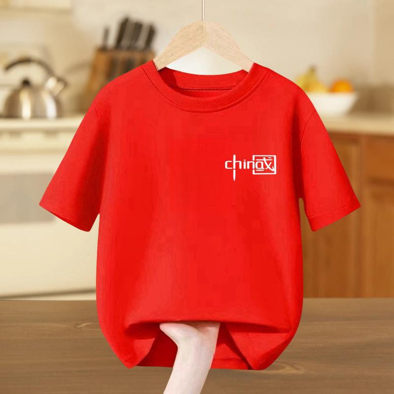 중국어 단어가 적힌 어린이 반팔 티셔츠 학생 애국 청소년 국가 트렌드 클래스 유니폼 공연 합창 의류스토어 가기